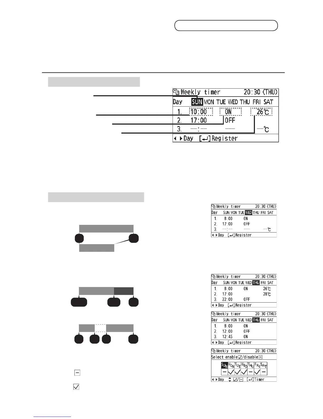 • The operation ON/OFF schedule or temperature setting schedule can be set by