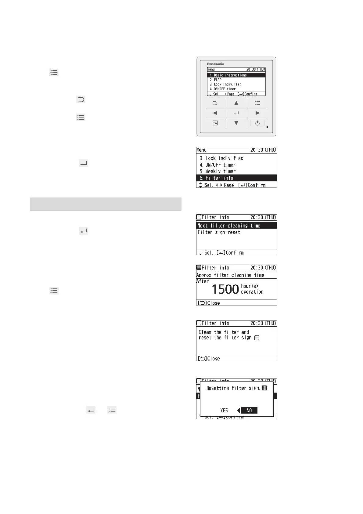 Select [Filter sign reset] in step 3