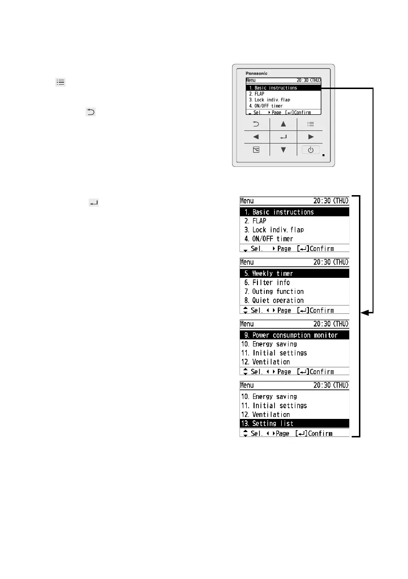 Selectable menus (1 to 13)