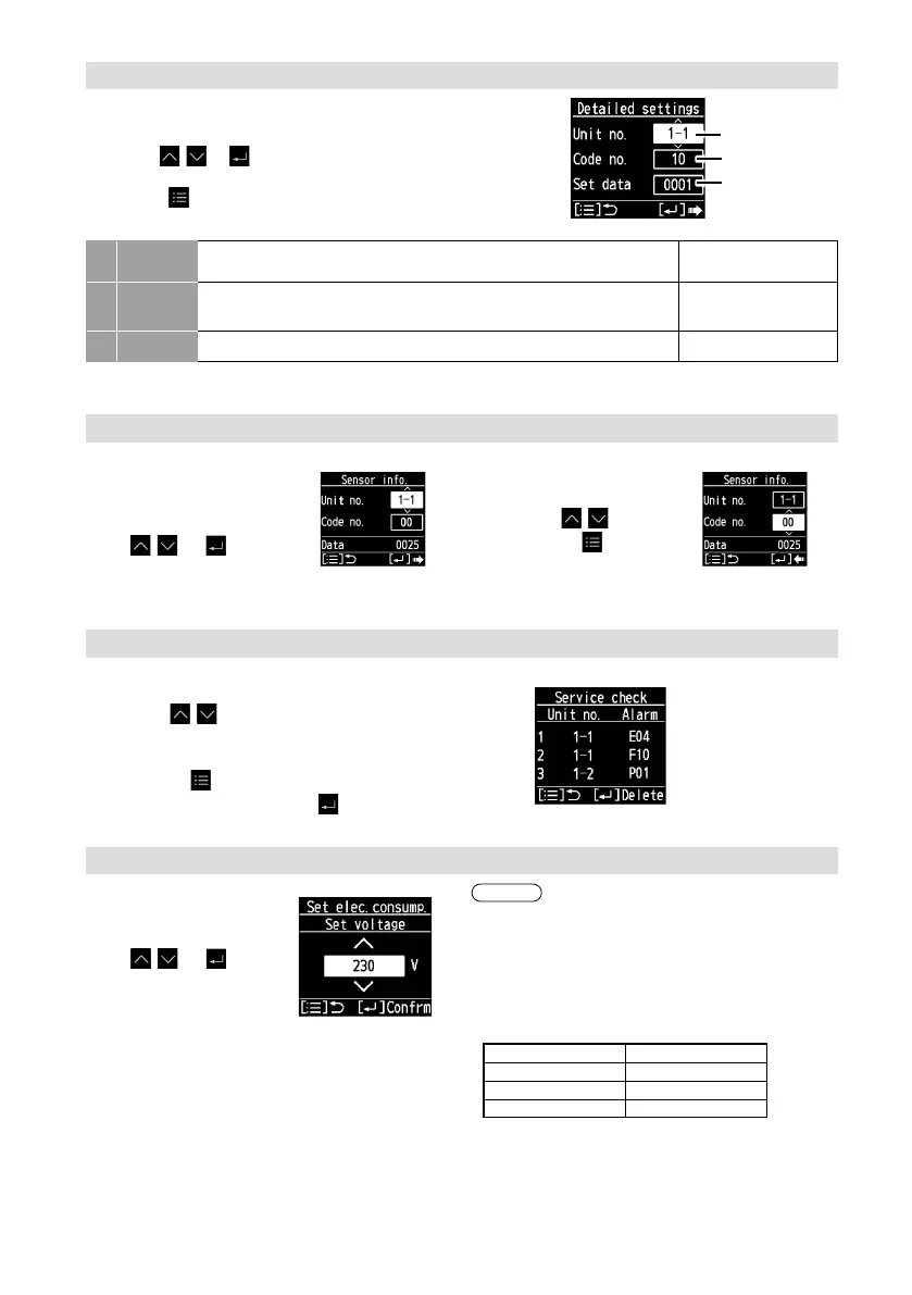 This displays each sensor temperature of the remote controller, indoor units and outdoor units.