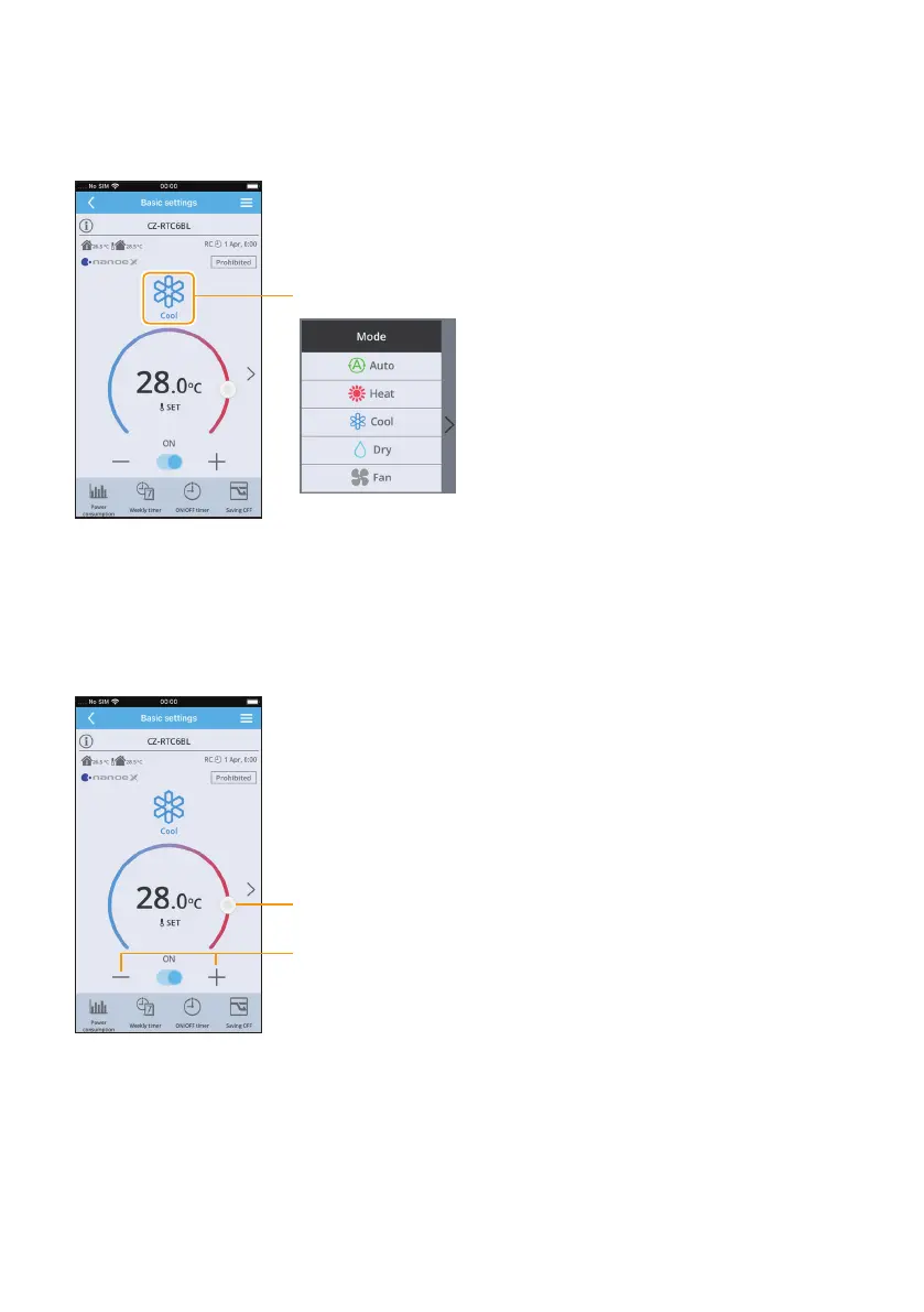 • Auto mode is automatically switched to Cool or Heat to achieve the