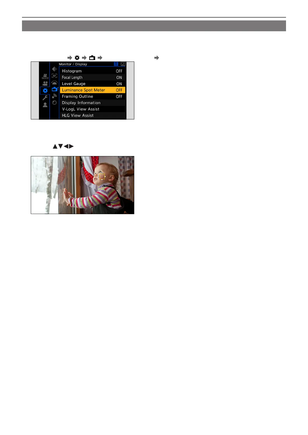 [MENU/SET] [ ] [ ] [Luminance Spot Meter] [ON]