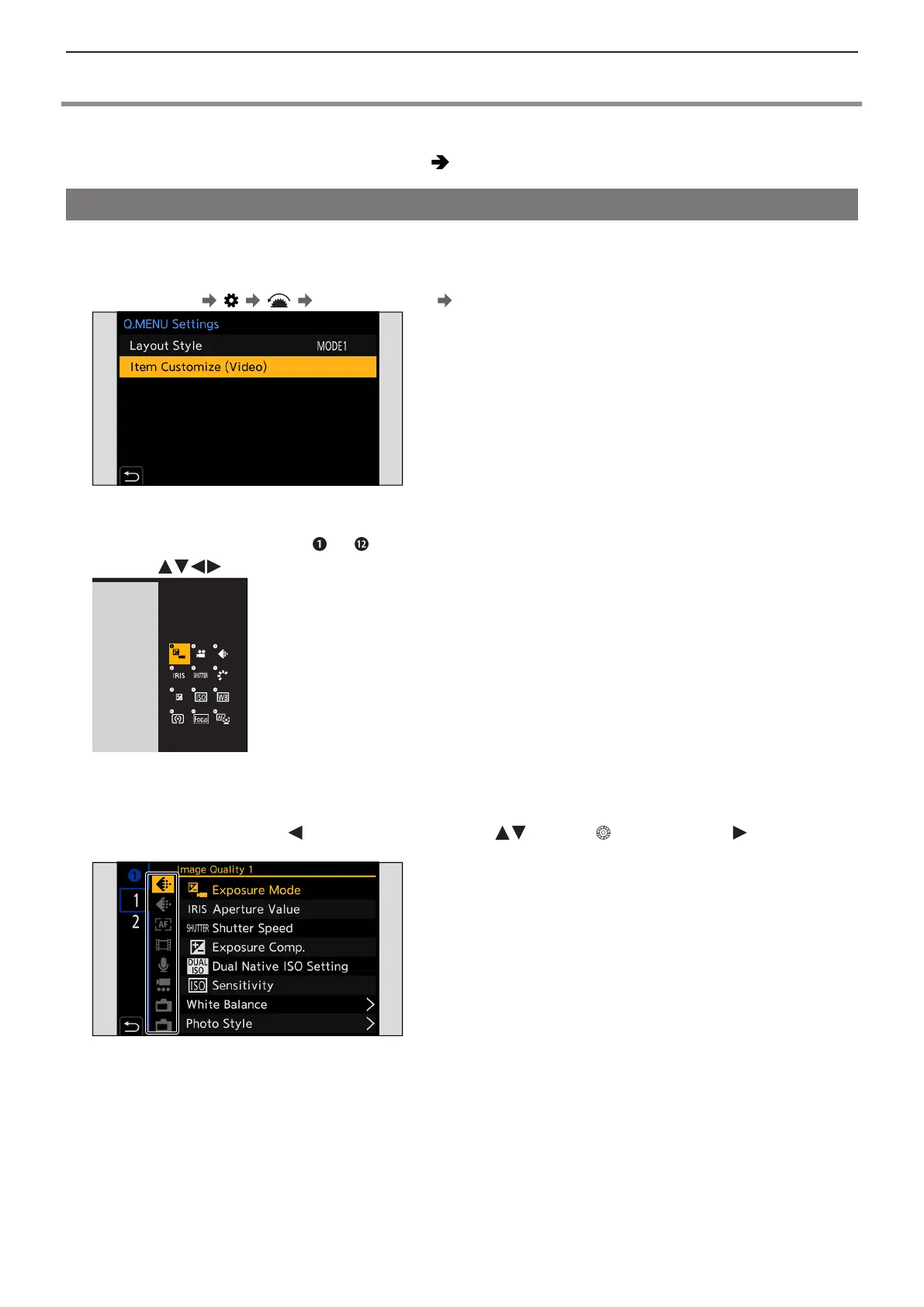 [MENU/SET] [ ] [ ] [Q.MENU Settings] [Item Customize (Video)]