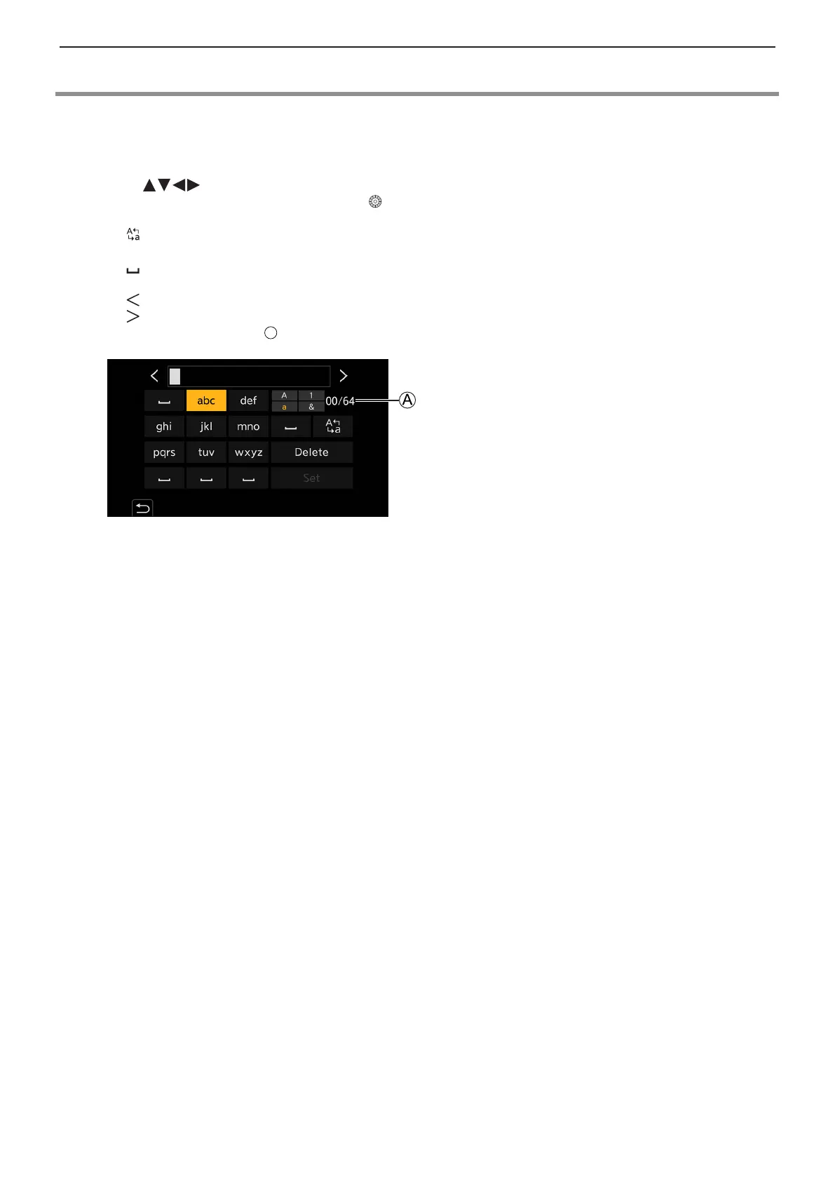 – [ ]: Change the character type to [A] (upper case characters), [a] (lower case characters), [1] (numbers), and [&]
