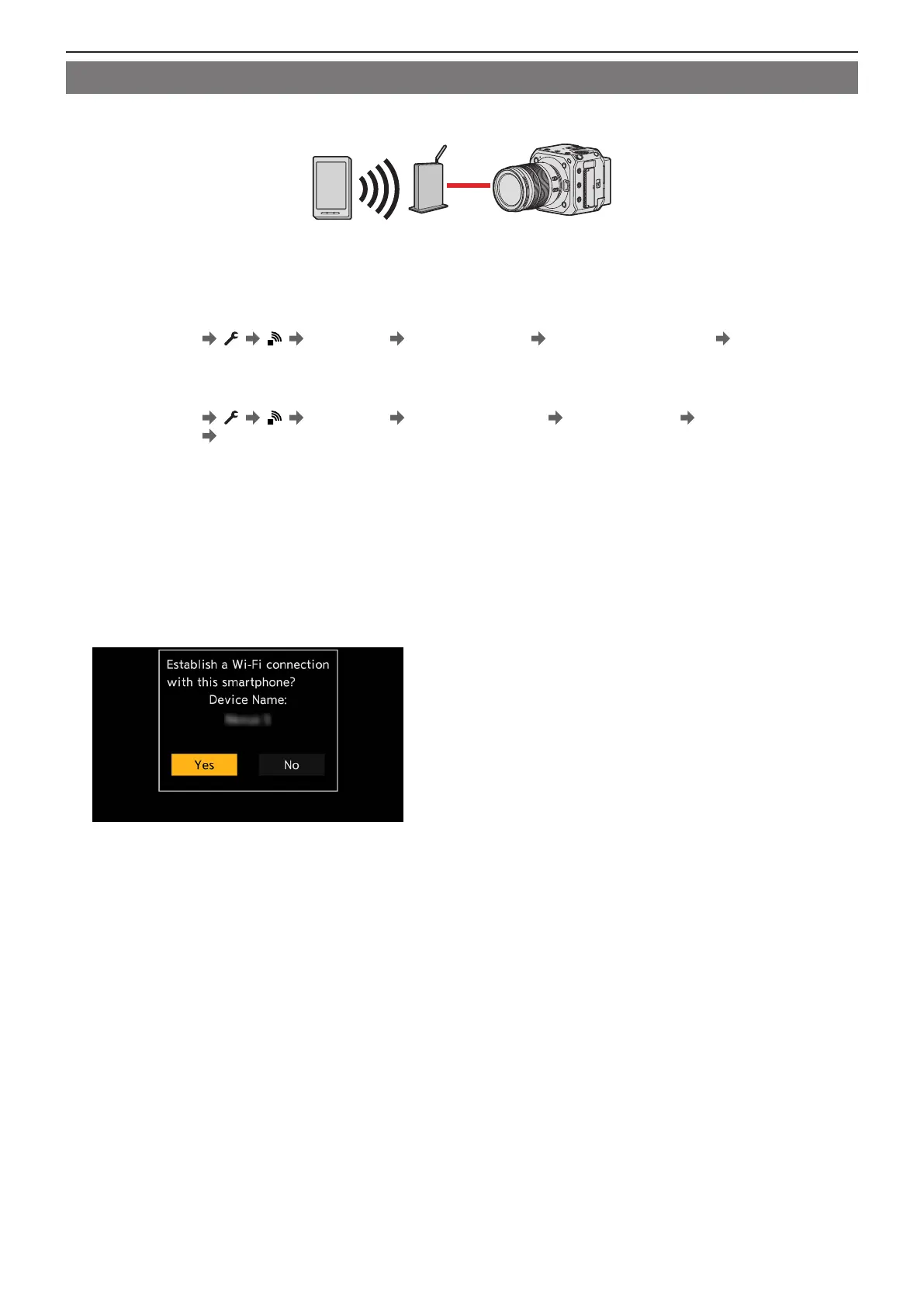 [MENU/SET] [ ] [ ] [LAN / Wi-Fi] [LAN / Wi-Fi Function] [New Connection] [Control With