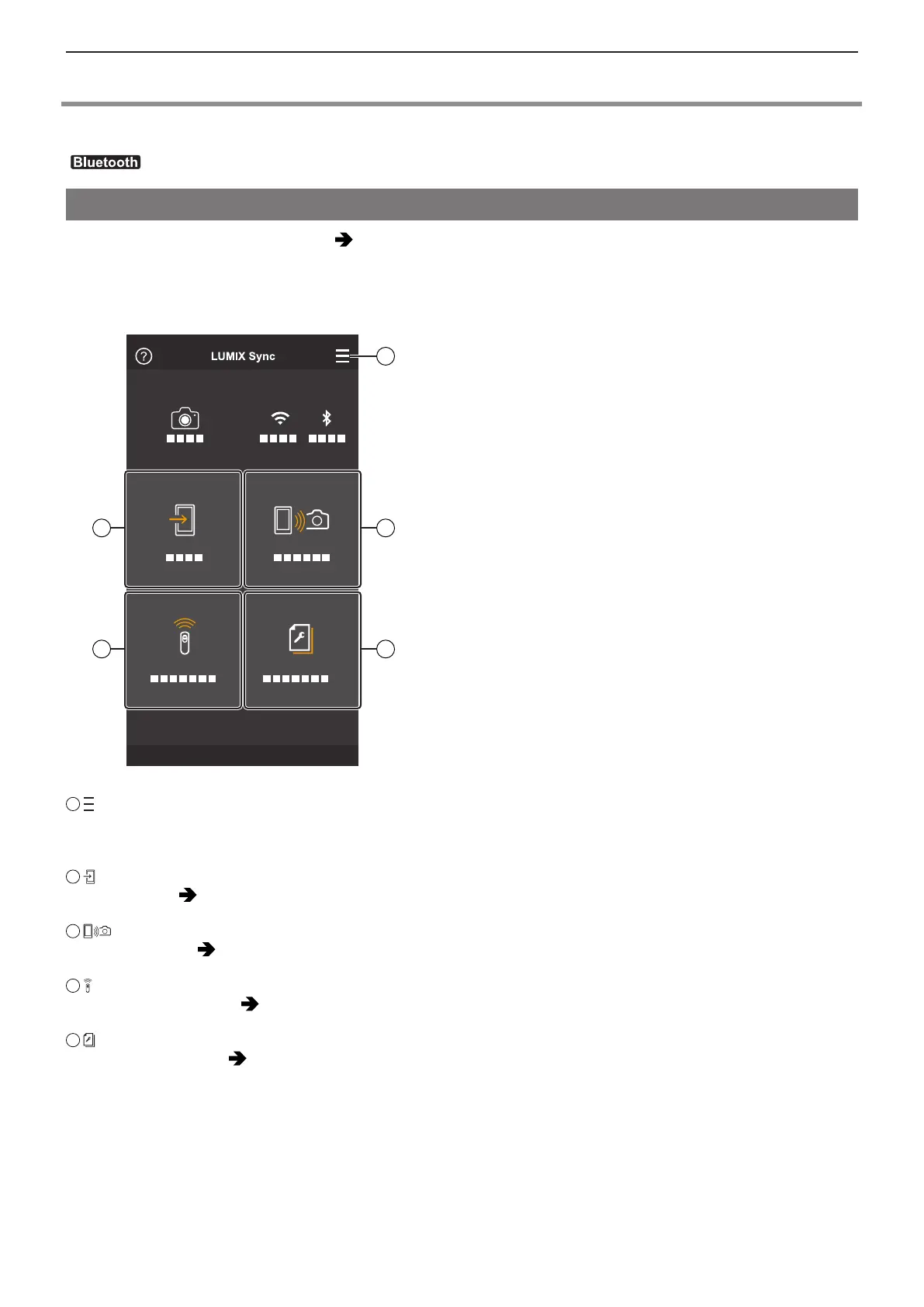 When you start up “LUMIX Sync”, the home screen is displayed.