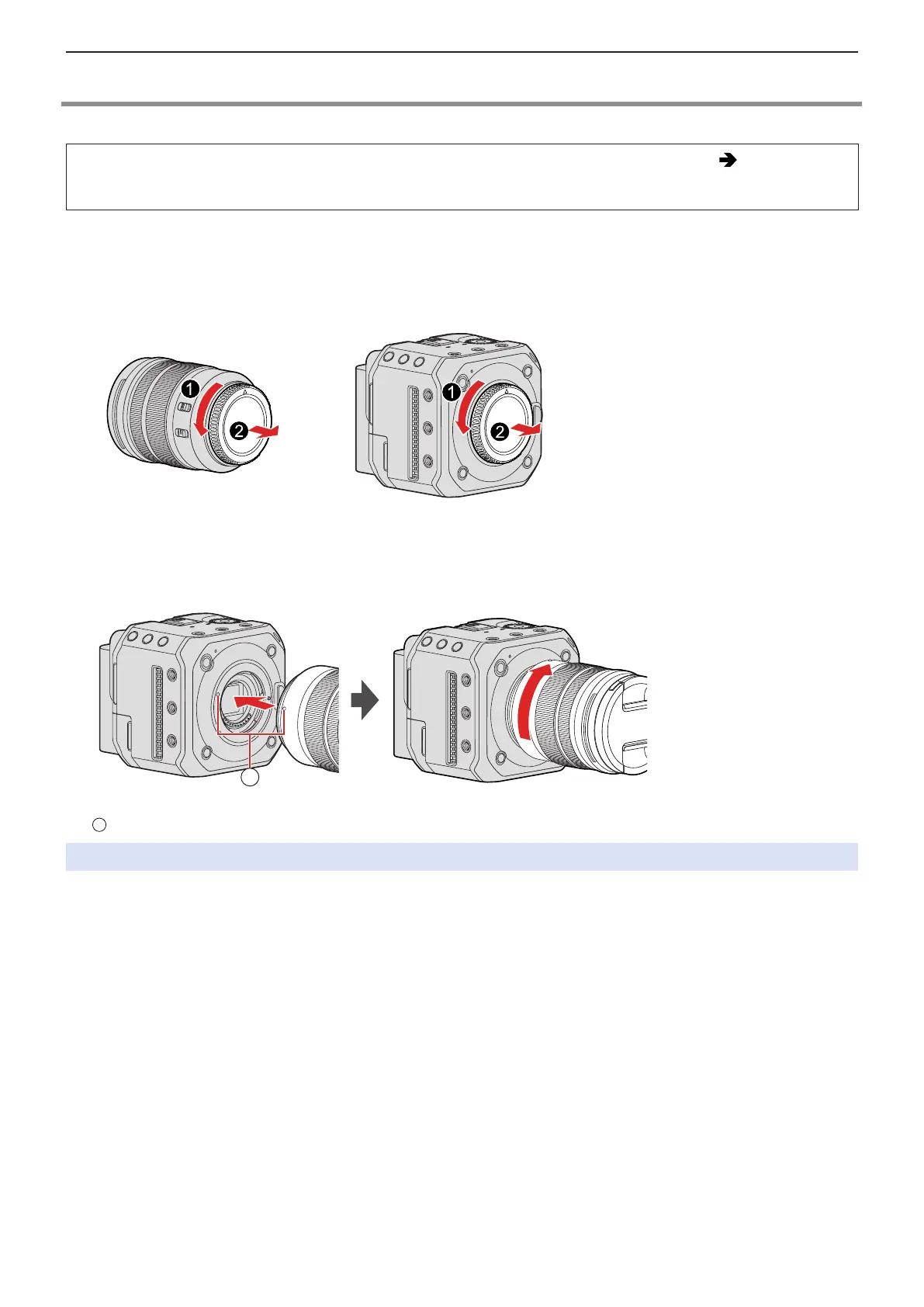 2 Turn the lens rear cap and the body cap in the direction of the arrow to remove them.