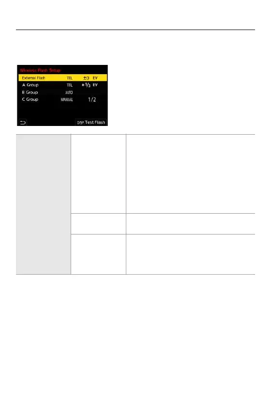 • To fire a test flash, press [DISP.].