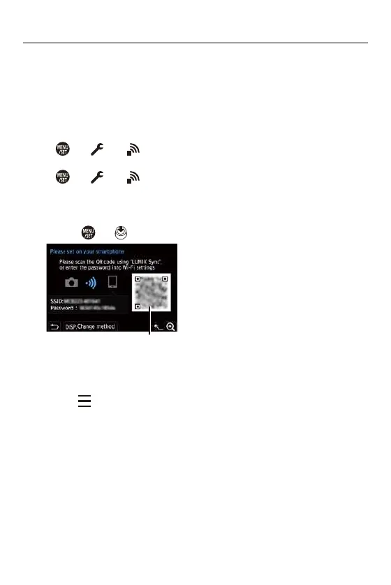 7 Scan the QR code displayed on the screen of the camera using “ LUMIX Sync ”.