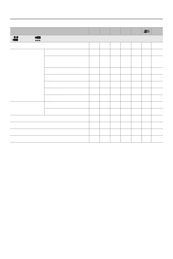 Materials – List of Functions That Can Be Set in Each Recording Mode