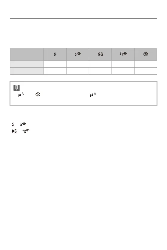 • [ ] and [ ] can be set in [iA] mode. In [ ], the flash mode switches to one