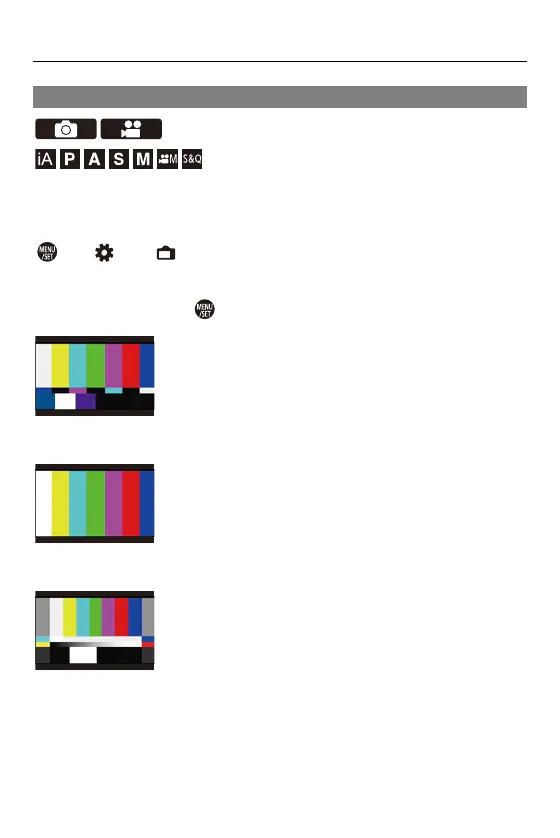 The color bars are displayed on the recording screen.