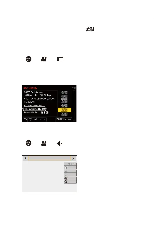Items available for recording with HLG video are indicated as [HLG available].