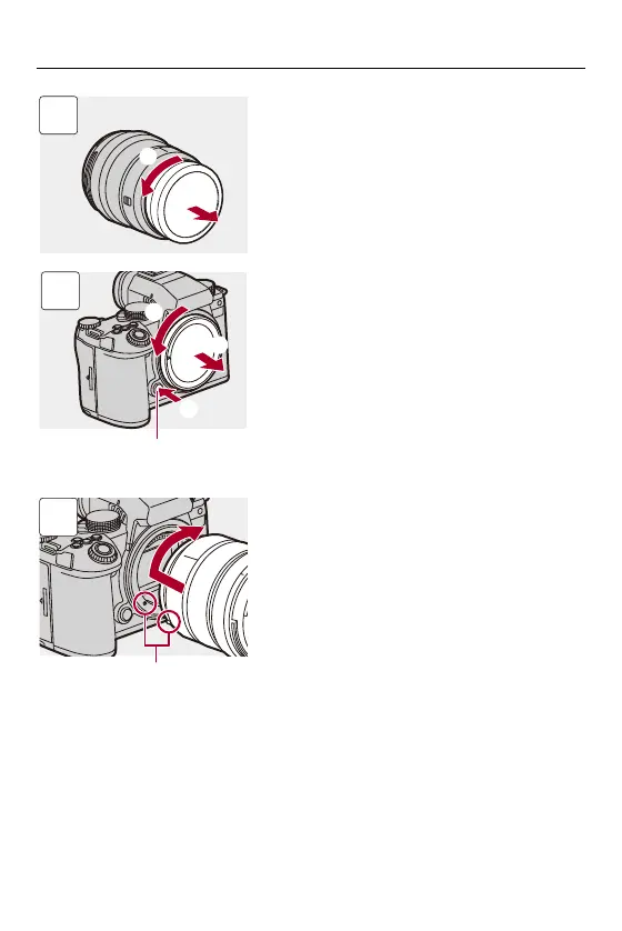 When removing the body cap, rotate it while pressing the lens release button (A).