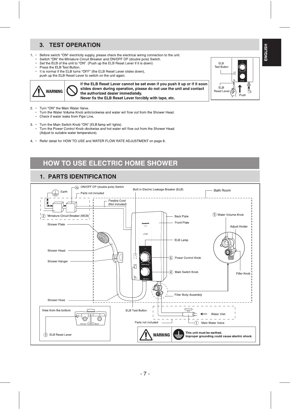 Panasonic DH-3JP2 - How to Use Electric Home Shower; Parts Identification