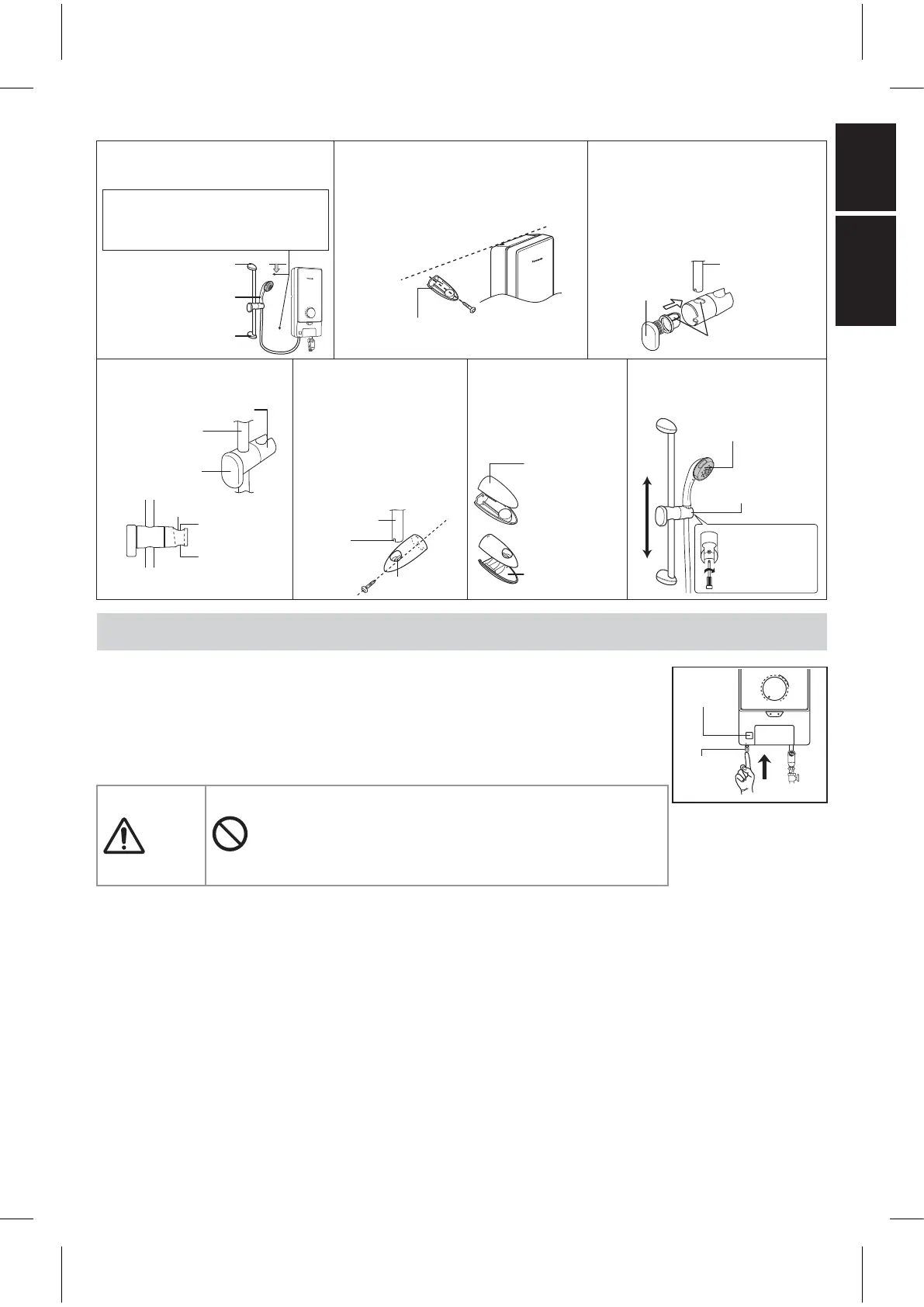 3. • Tekan Tuas On-Off sekali, panel Lampu ELB akan menyala dan air akan mula mengalir keluar dari Kepala Pancuran.