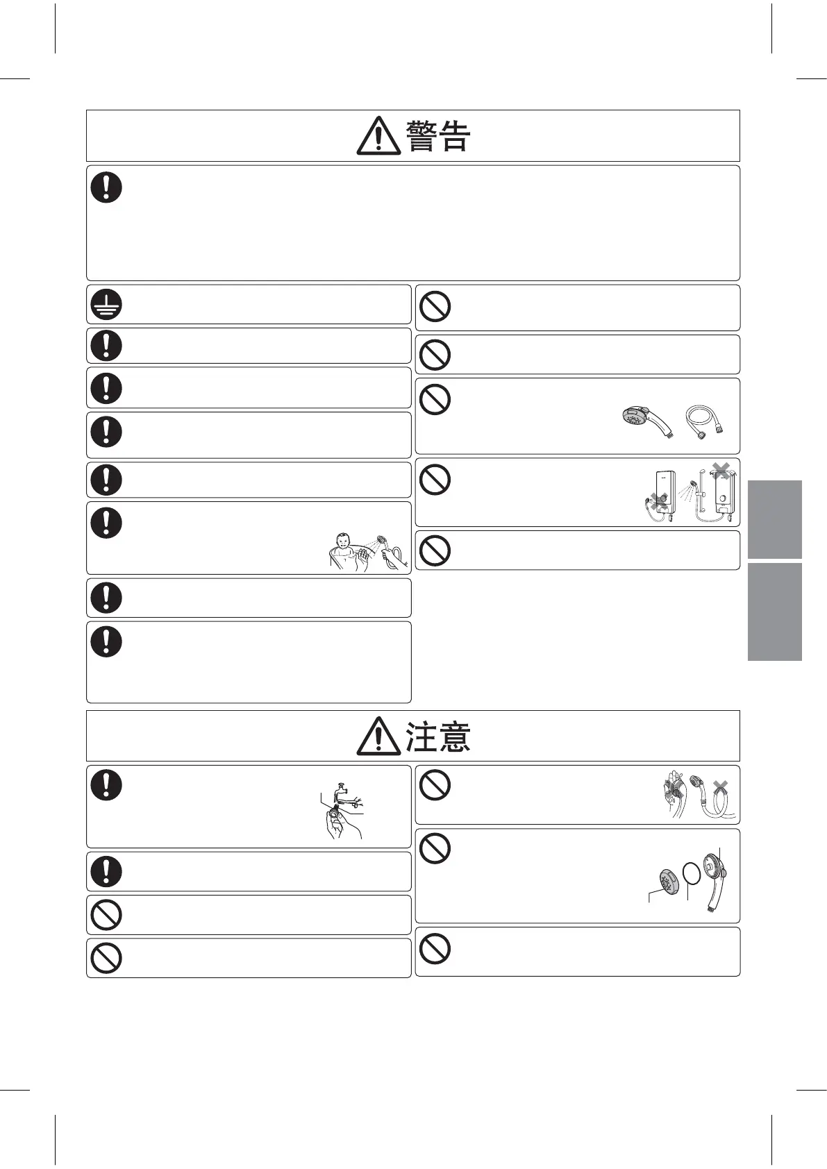 • 不要將手指或其他物品插入電熱花灑器,以避免電擊危