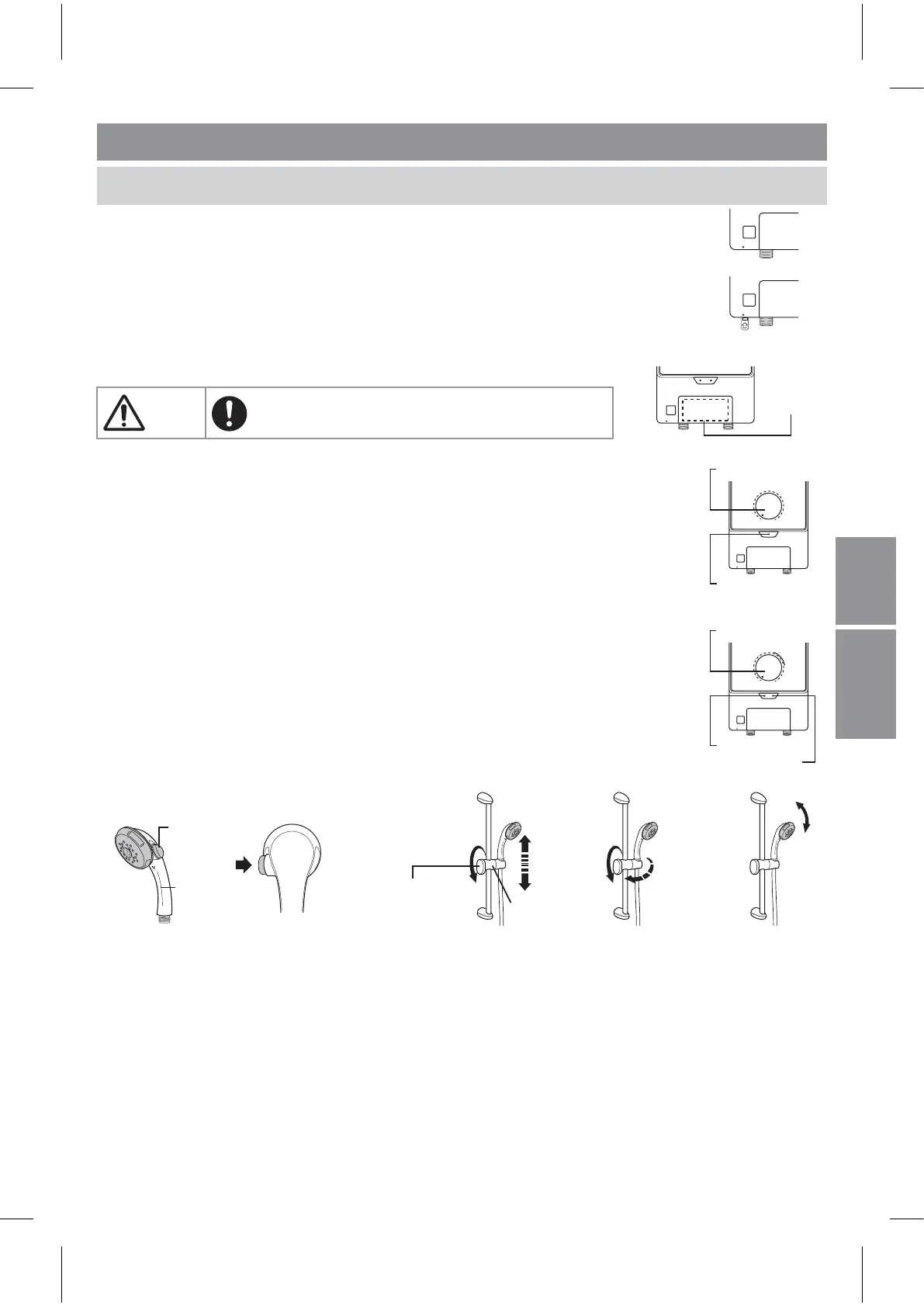 • 逆時針的方向轉動水量調整鈕將減少流水量將而導致水溫上升。