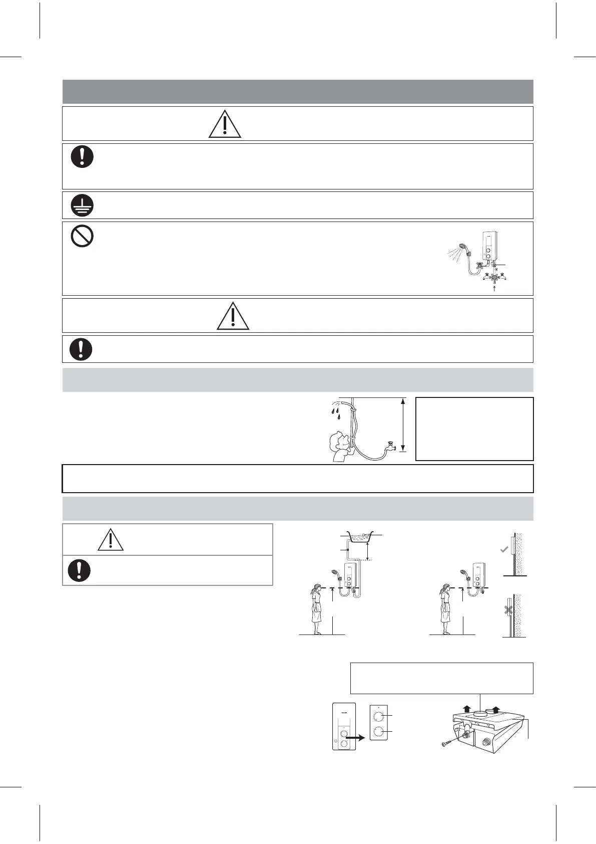 • Do not share the inlet and outlet pipe of the Home Shower Unit with other outlets.