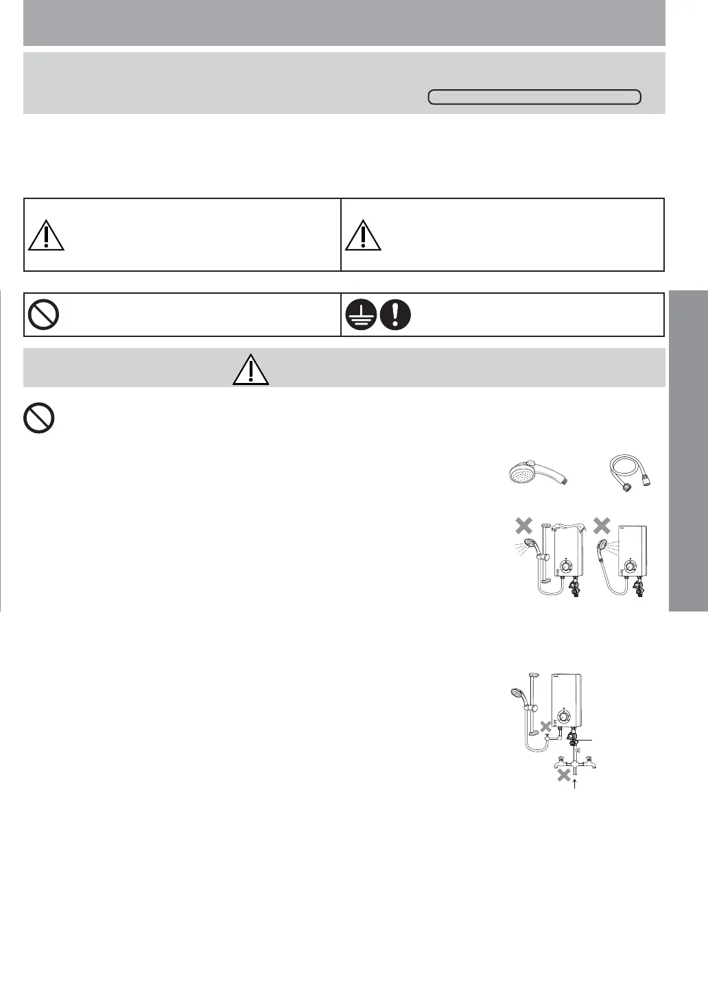 ● Không được dùng chung ống nước đầu vào của thiết bị vòi sen với các ống
