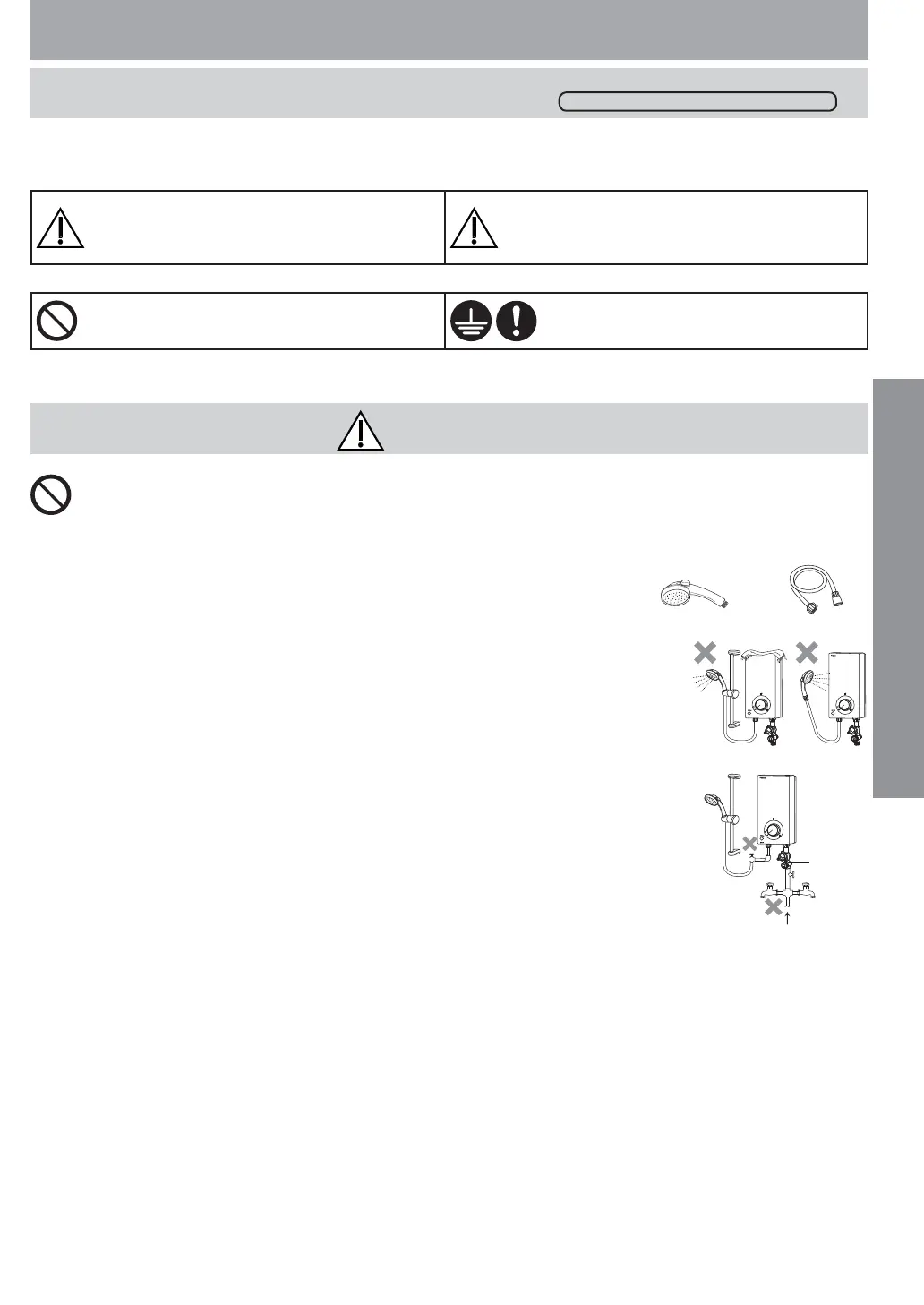 ● ห้ามฉีดน้ําใส่เครื่องทําน้ําอุ่นหรือห้ามวางผ้าเช็ดตัวที่เปียกชื้นบนตัวเครื่อง หลีกเลี่ยง