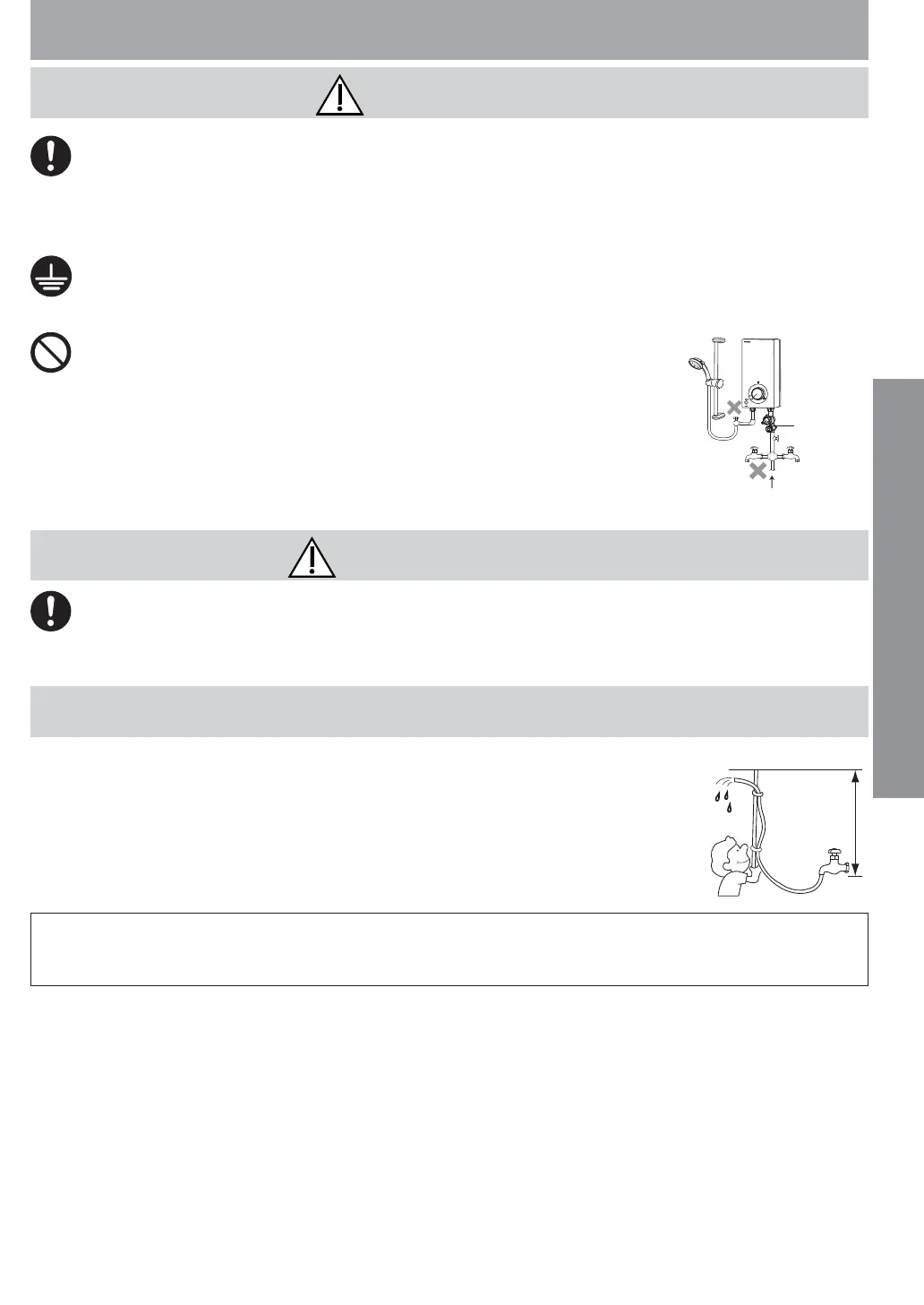 ● Pancuran mandi ini hendaklah disambung secara kekal ke bekalan elektrik menerusi Suis ON/OFF DP (dwikutub) yang