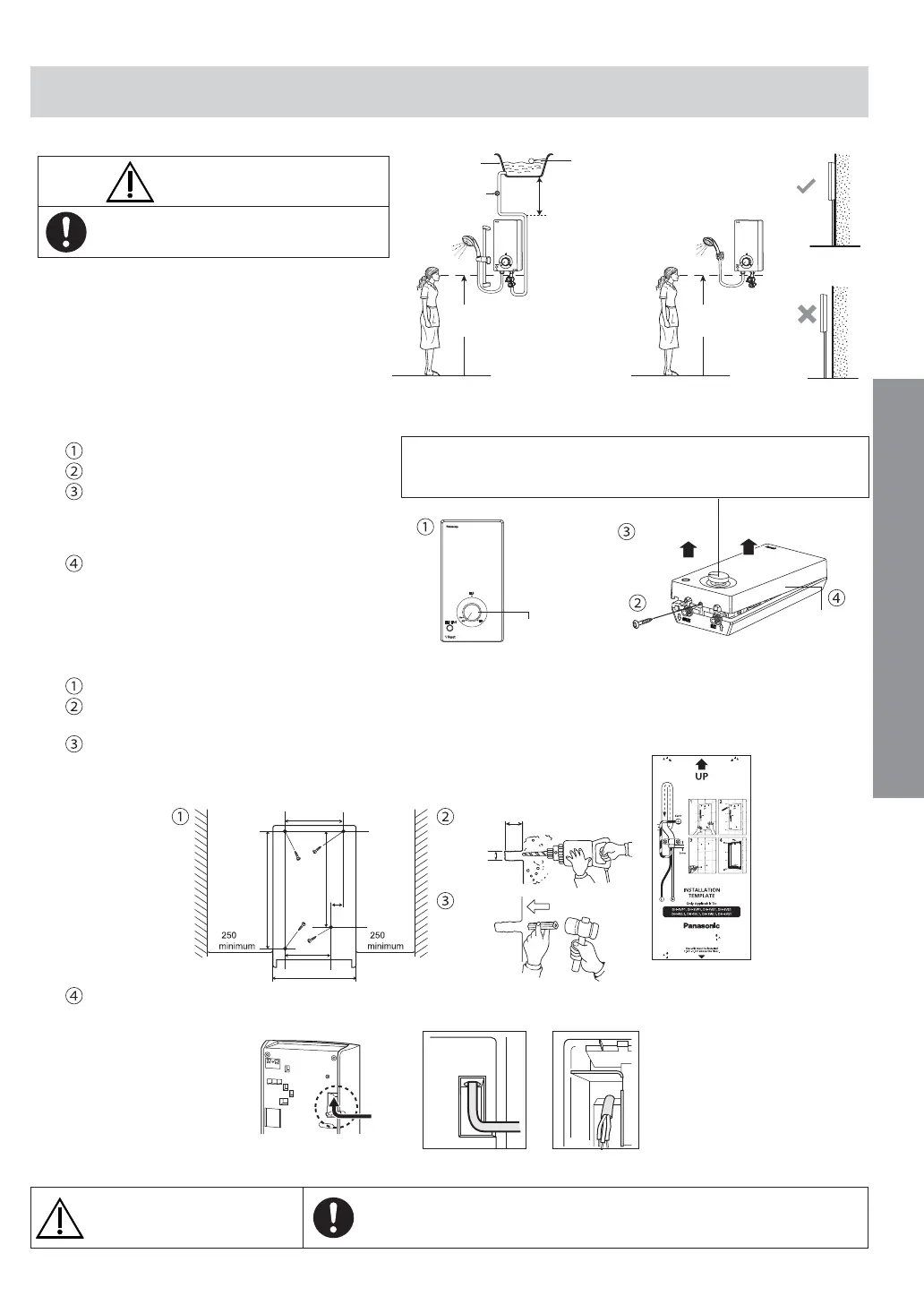 Jarak Unit hendaklah lebih daripada 250 mm dari kanan dan kiri dinding.