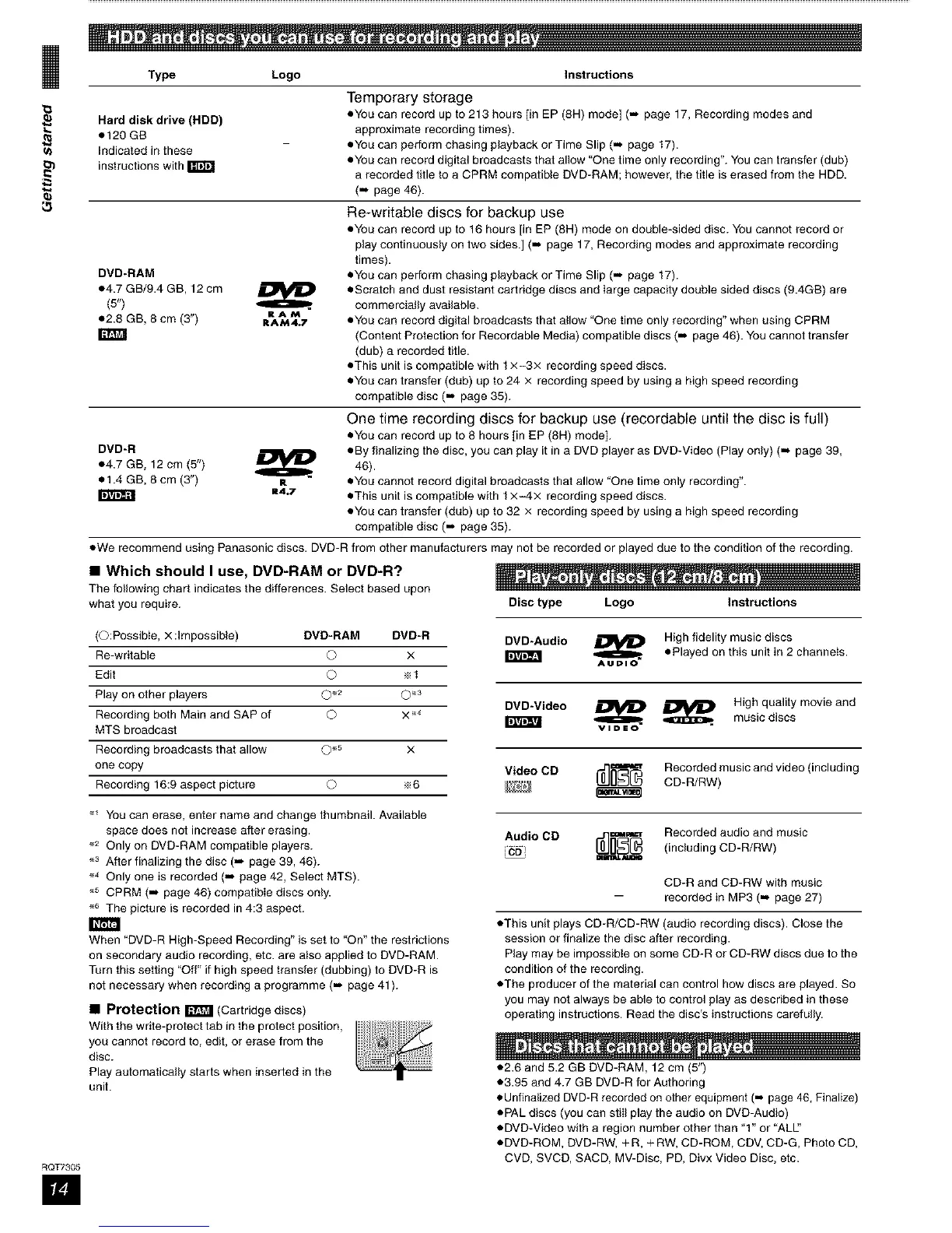 CPRM (,.* page 46) compatible discs only.