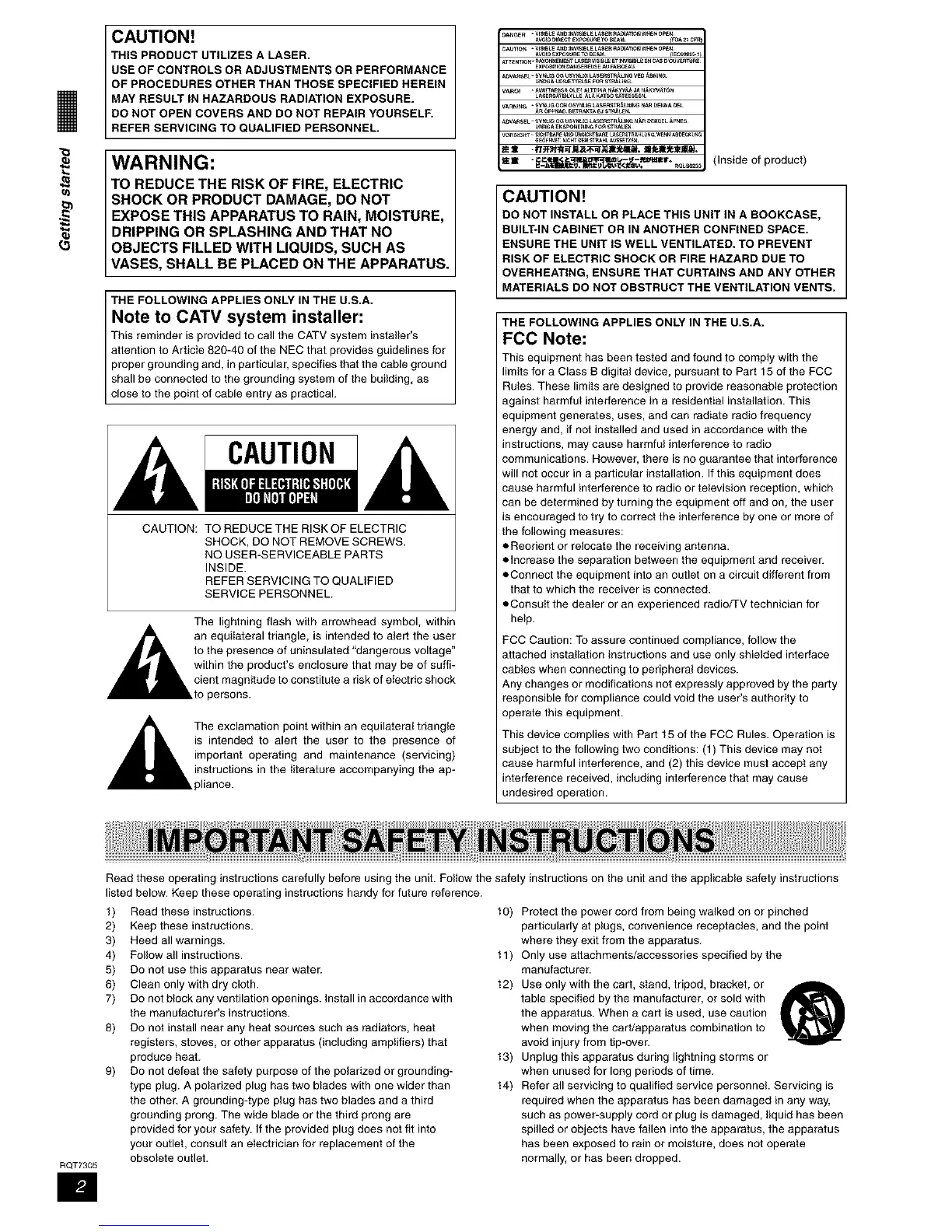 THIS PRODUCT UTILIZES A LASER,