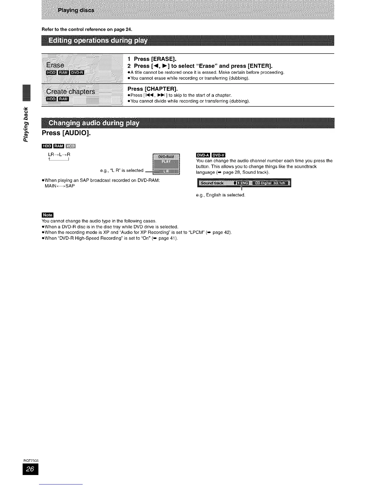 eWhen the recording mode is XP and "Audio for XP Recording" is set to "LPCM" (_ page 42).