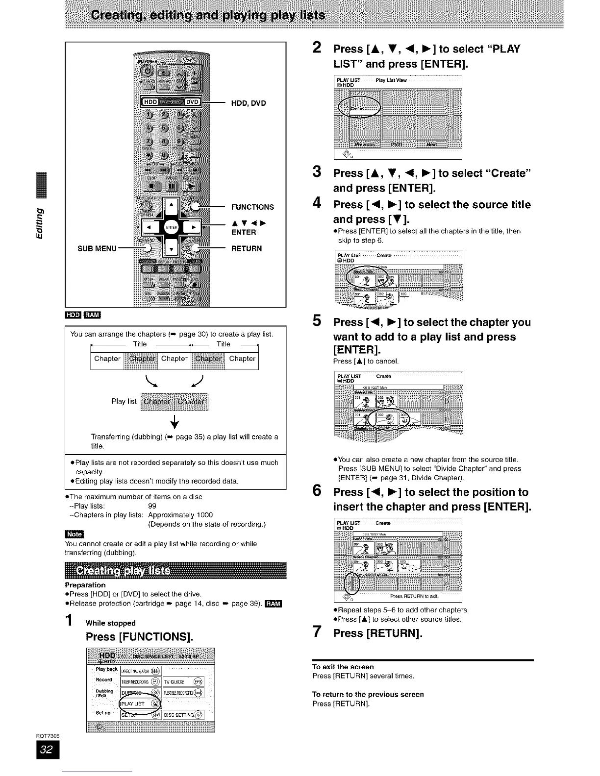You can arrange the chapters (.- page 30) to create a play list.