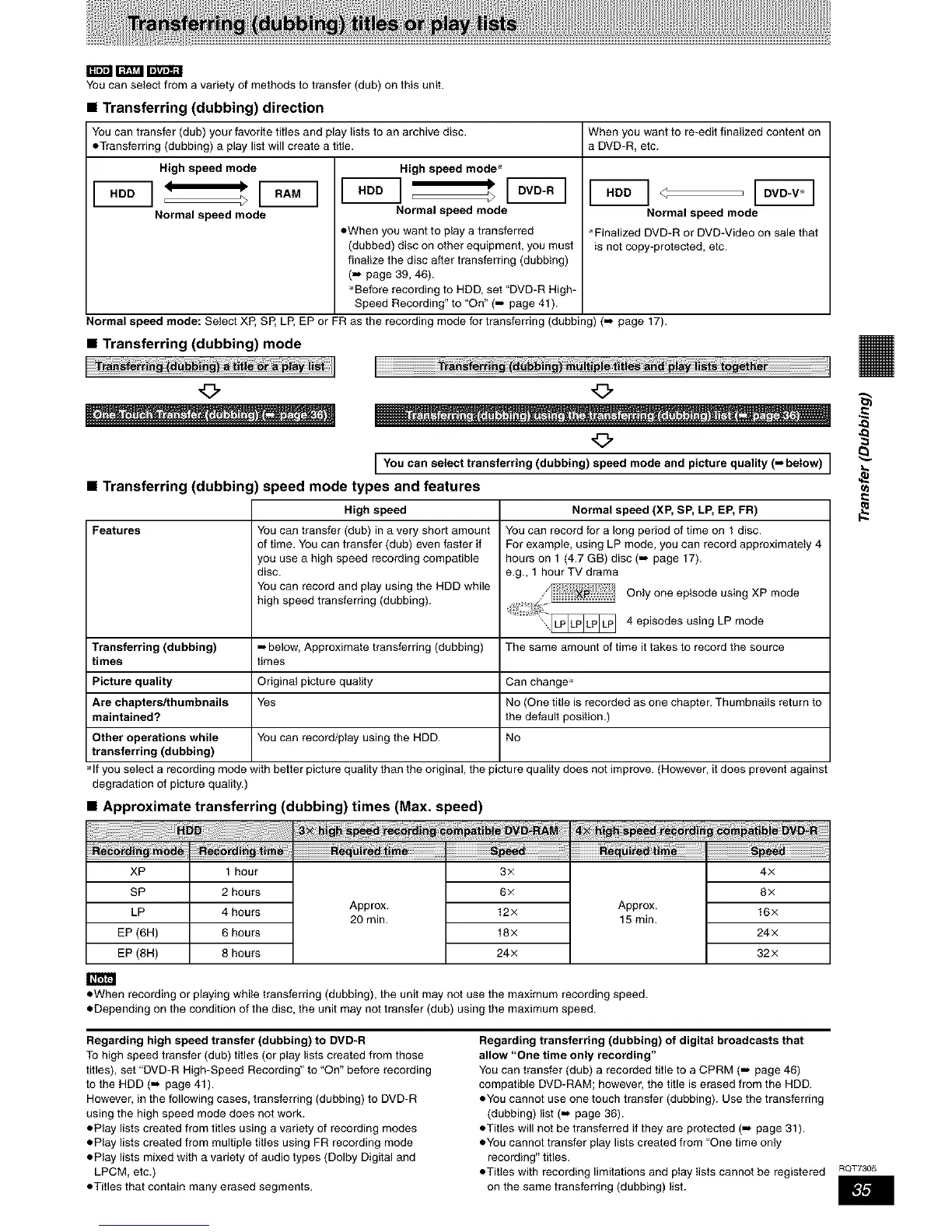 • Transferring (dubbing) speed mode types and features