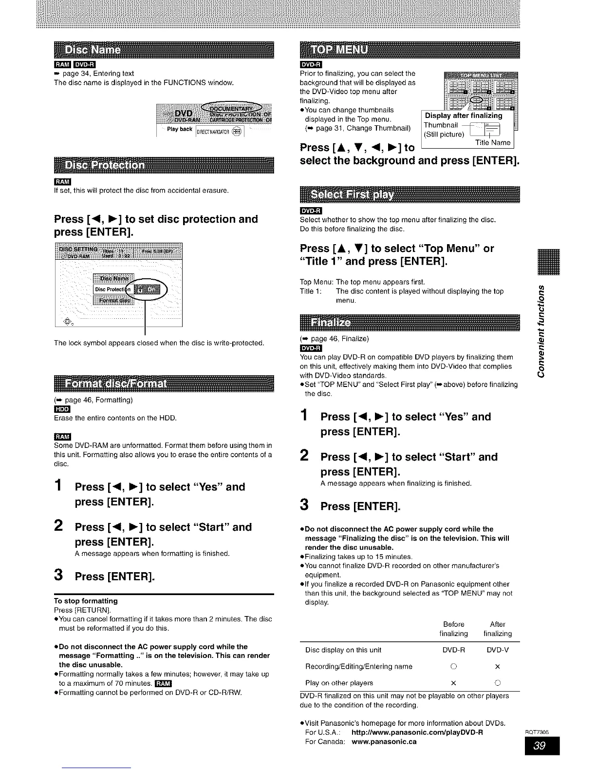 For U.S.A.: http:llwww.panasonic.comlplayDVD-R RQT7305
