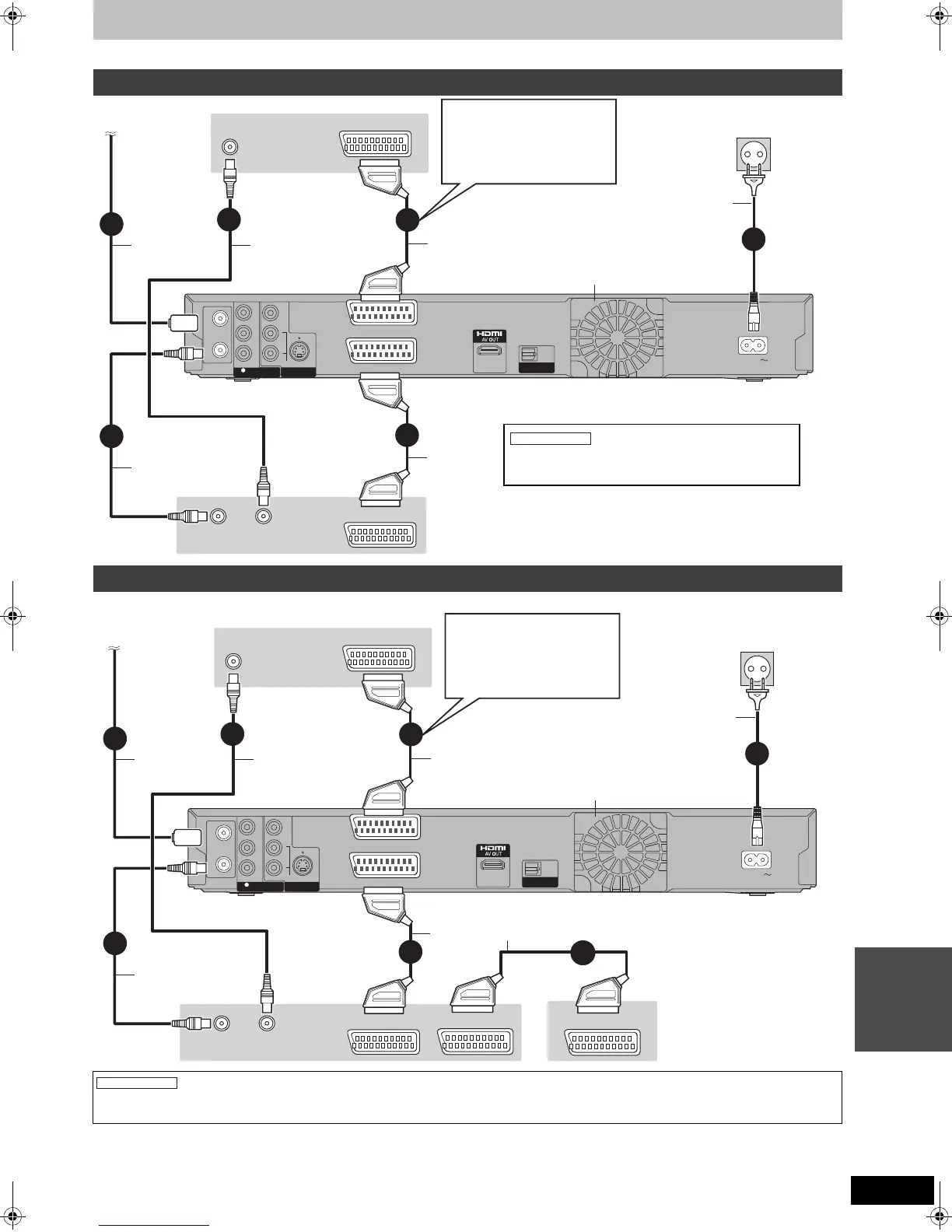 Connecting a television and VCR, digital satellite receiver or analogue decoder