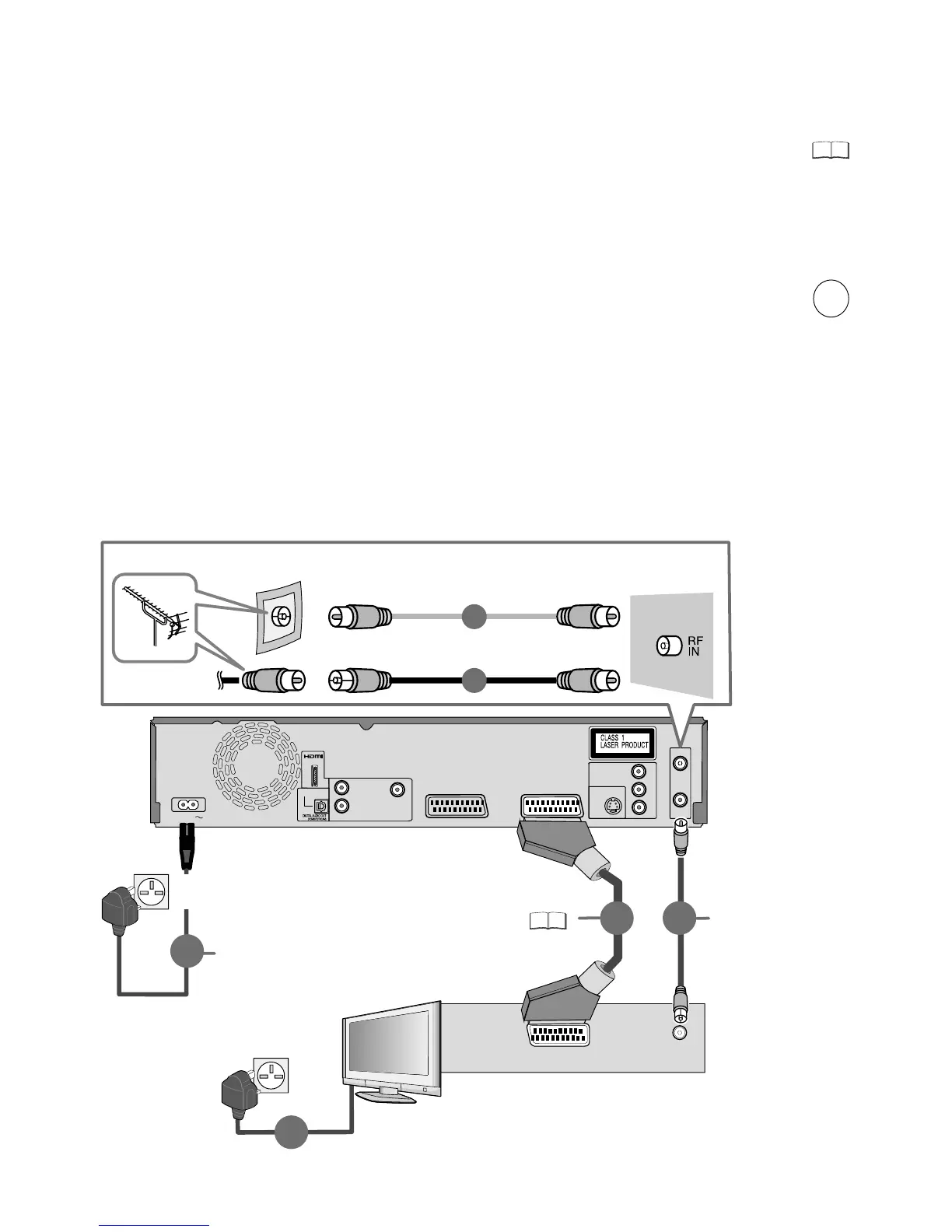 1 Connect the aerial to RF IN (Aerial input) of the DVD Recorder.