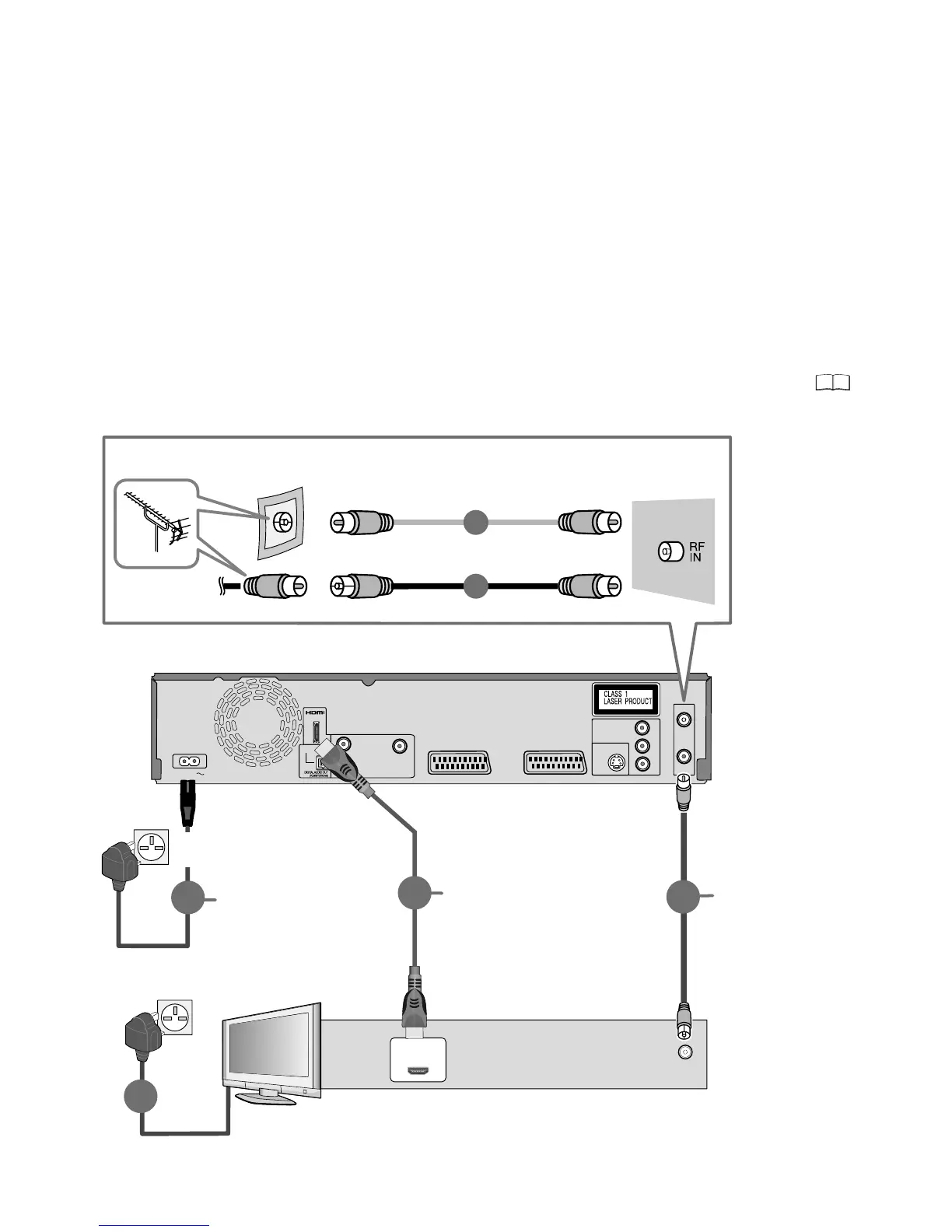 Connect the aerial to RF IN (Aerial input) of the DVD Recorder.