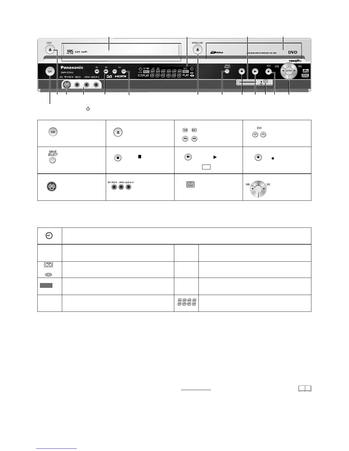 Standby/on switch : Press to switch the unit from on to standby mode or vice versa. In standby mode, the unit is still consuming a small