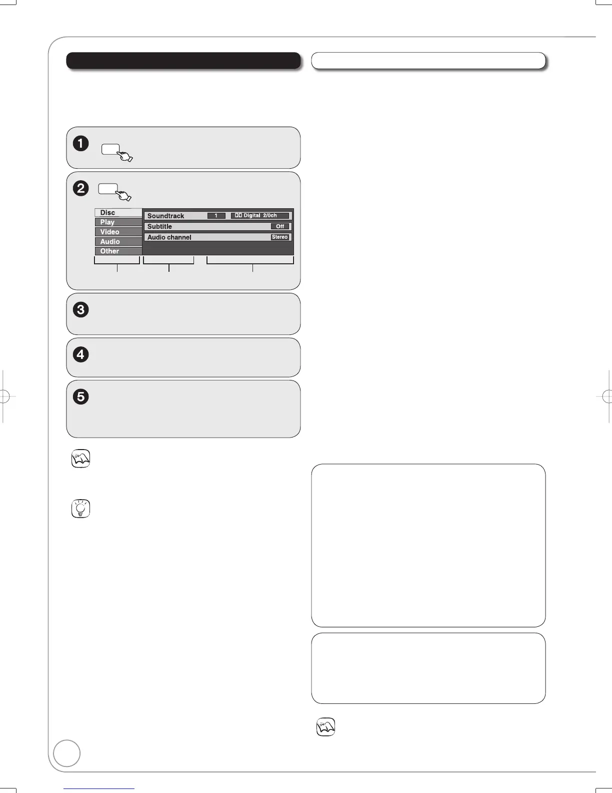 Turn the subtitle on/off and select the language (¼ below, Soundtrack/