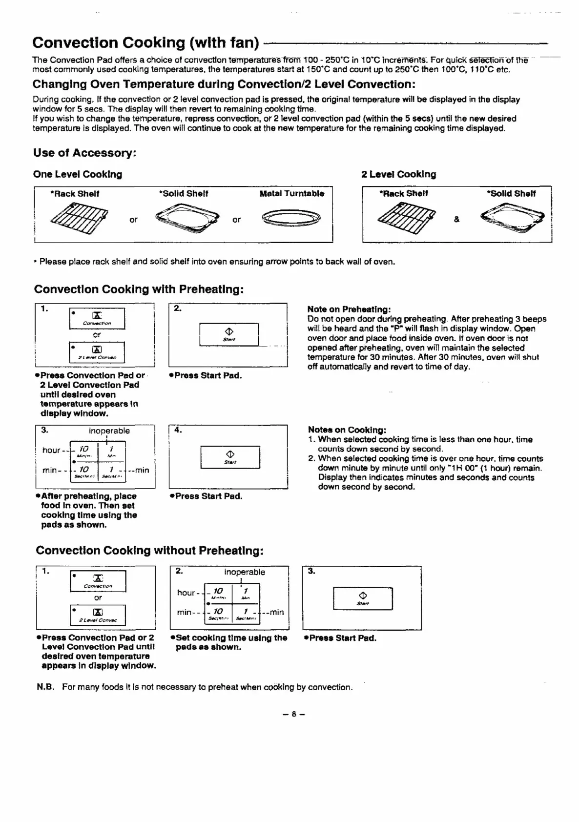 Panasonic DIMENSION 4 Premier - Convection Cooking with Preheating; Convection Cooking Without Preheating