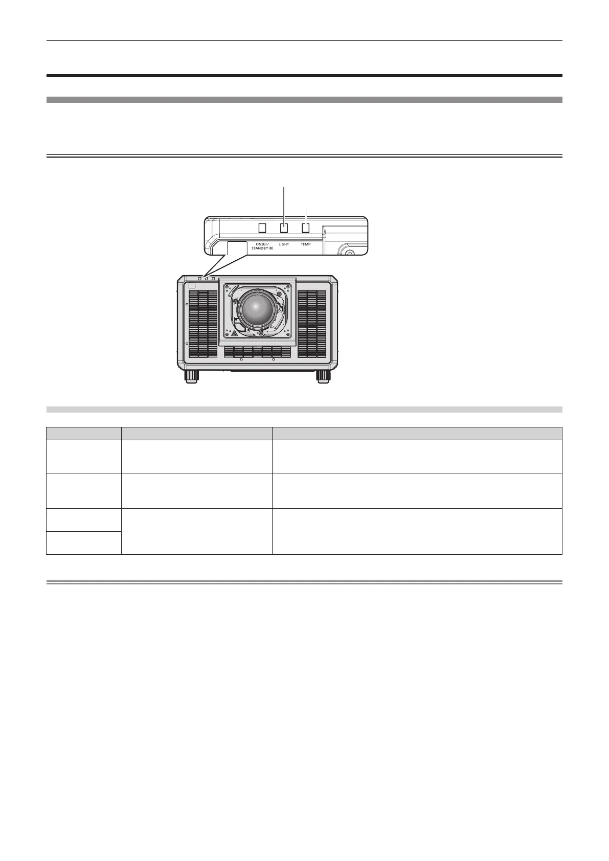 f The light source indicator <LIGHT> will light up in green if the projector is in projection mode and there is no indication of problem by lighting