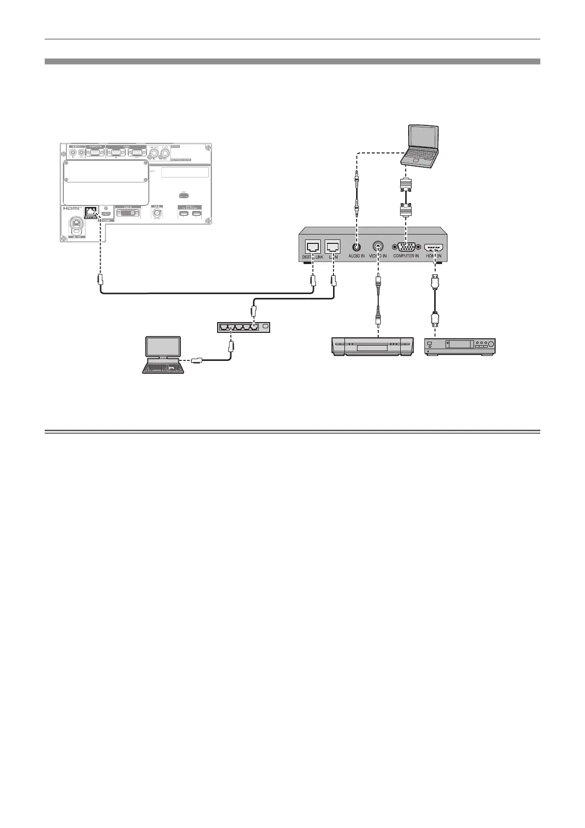 f When connecting to the projector using a twisted-pair-cable transmitter (receiver) of other manufacturers, do not place another twisted-pair-