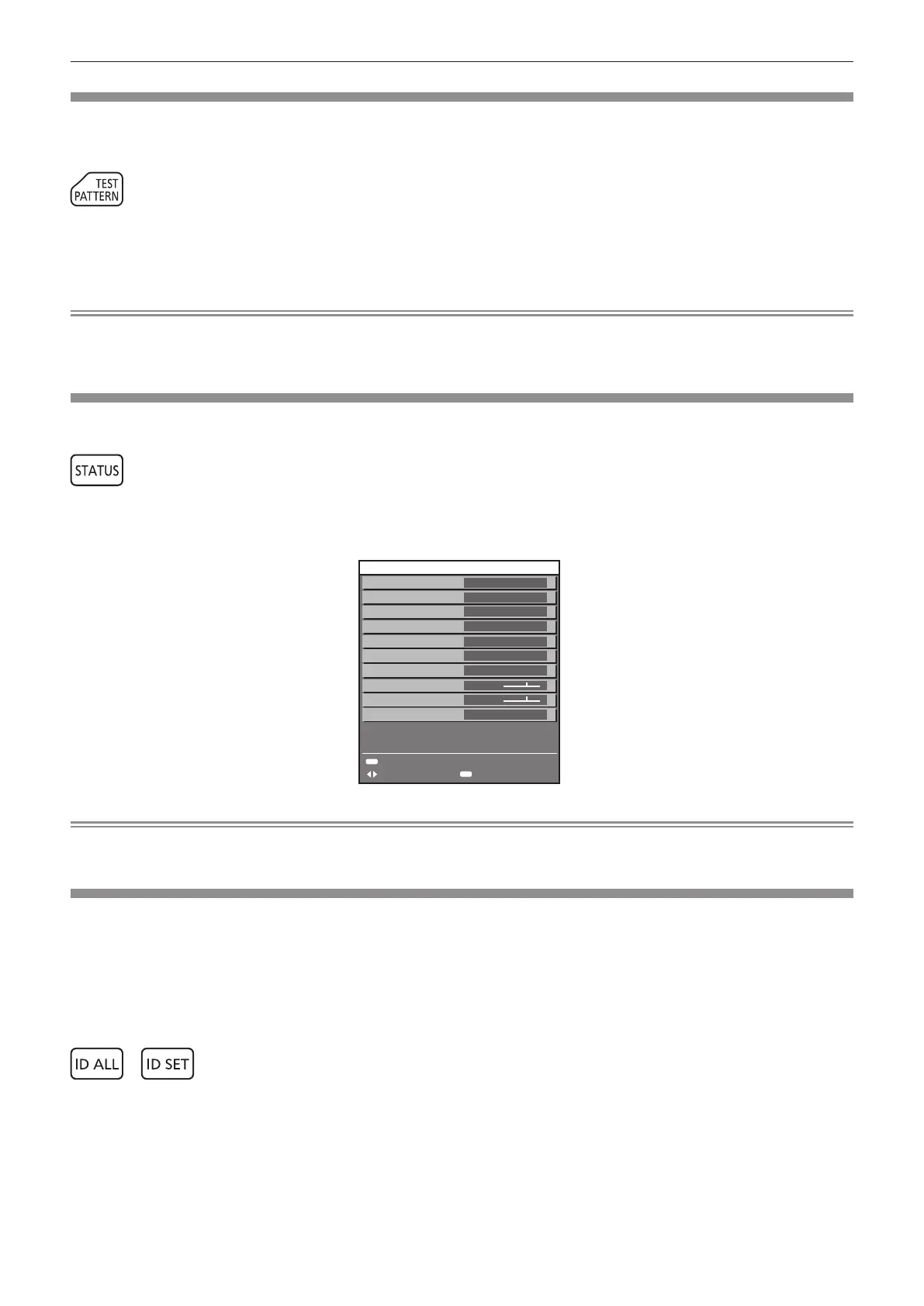 f Test patterns can also be displayed using the menu operation. Refer to “[TEST PATTERN] menu” (x page 206) for details.