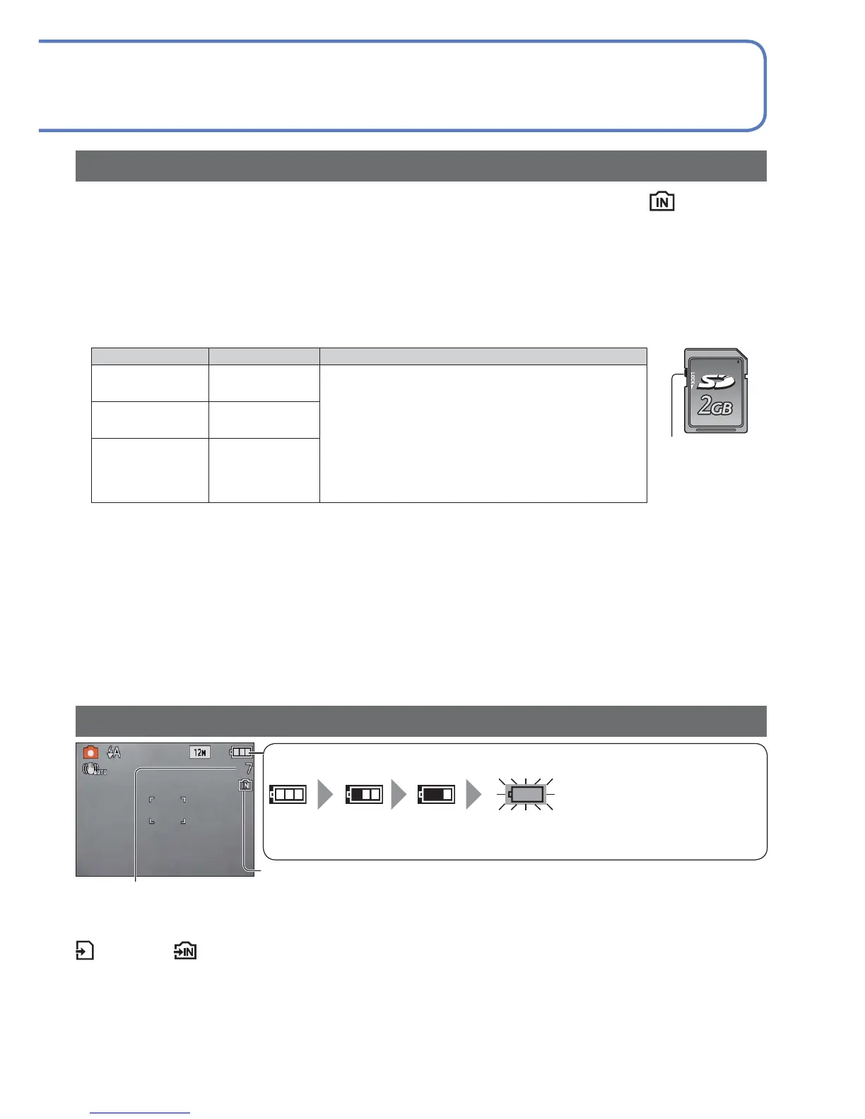 Displayed when no card is inserted (pictures will be saved to built-in memory)