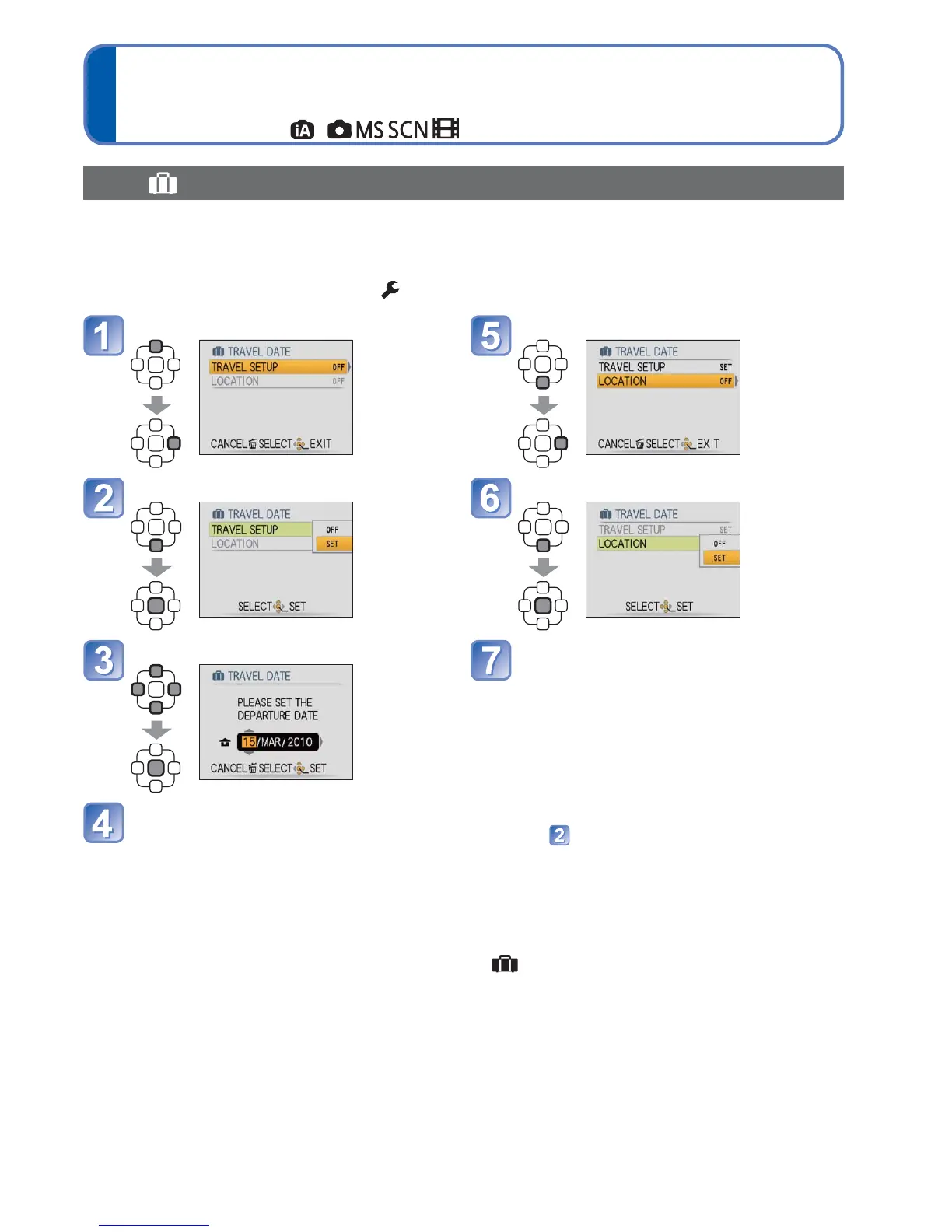 • Press [MENU/SET] → [SETUP] menu → Select [TRAVEL DATE]