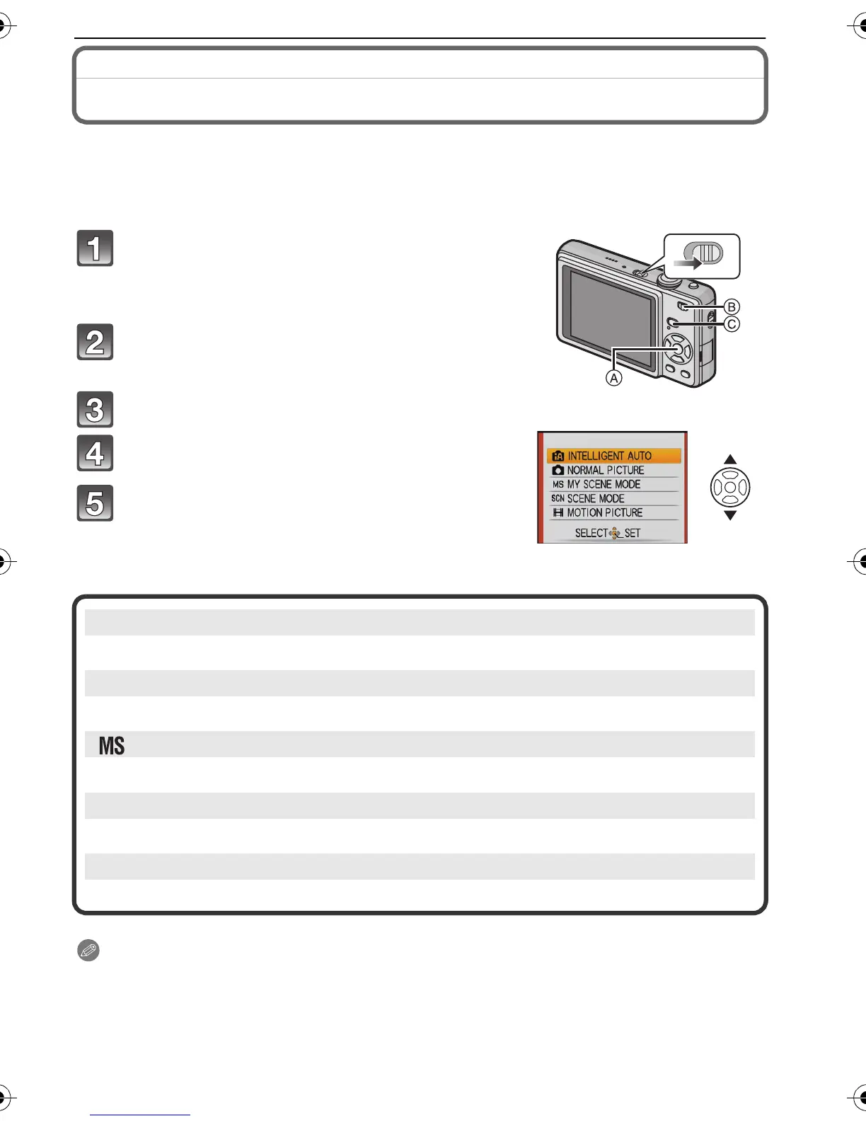 • Refer to P28 for details on selecting Intelligent auto mode.