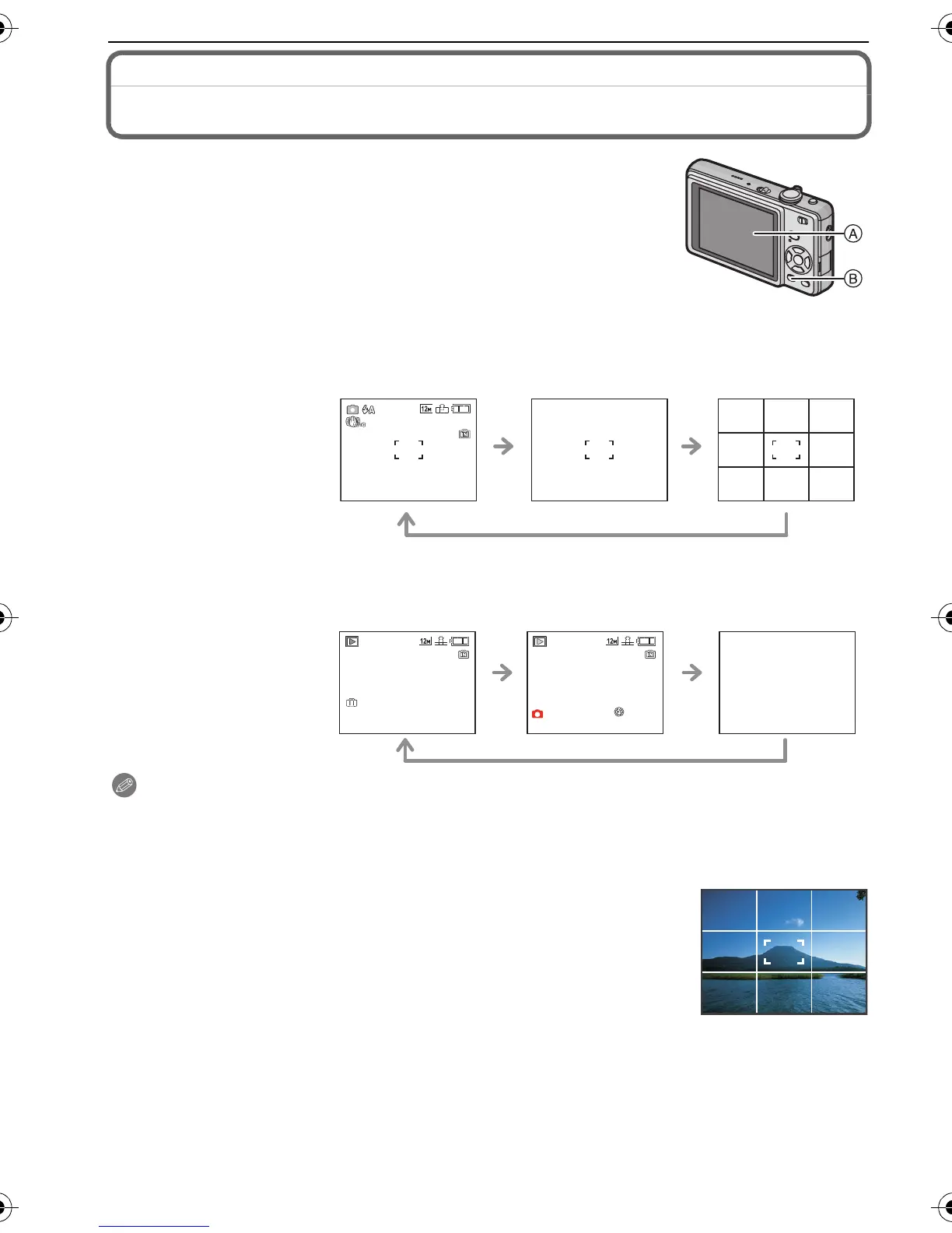 • In [PHOTO FRAME] in scene mode, the guide line is not displayed. (P46)