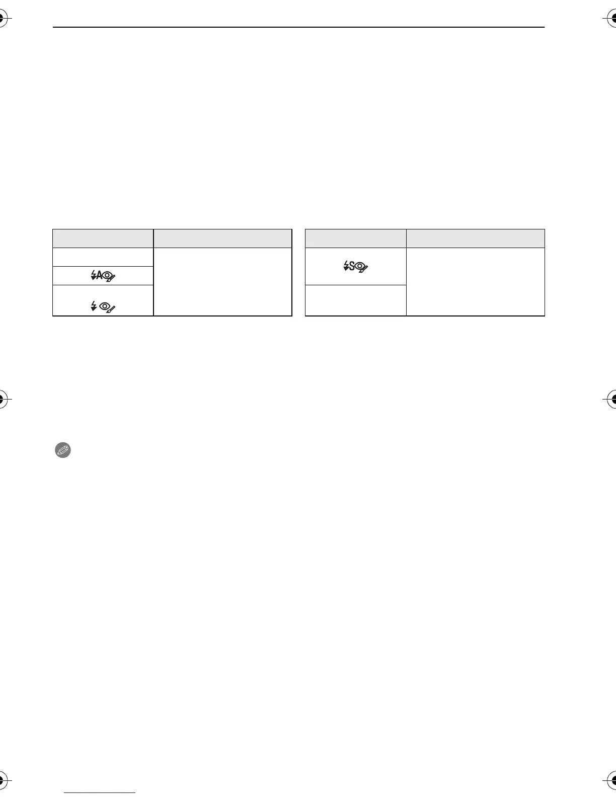 Flash setting Shutter speed (Sec.) Flash setting Shutter speed (Sec.)