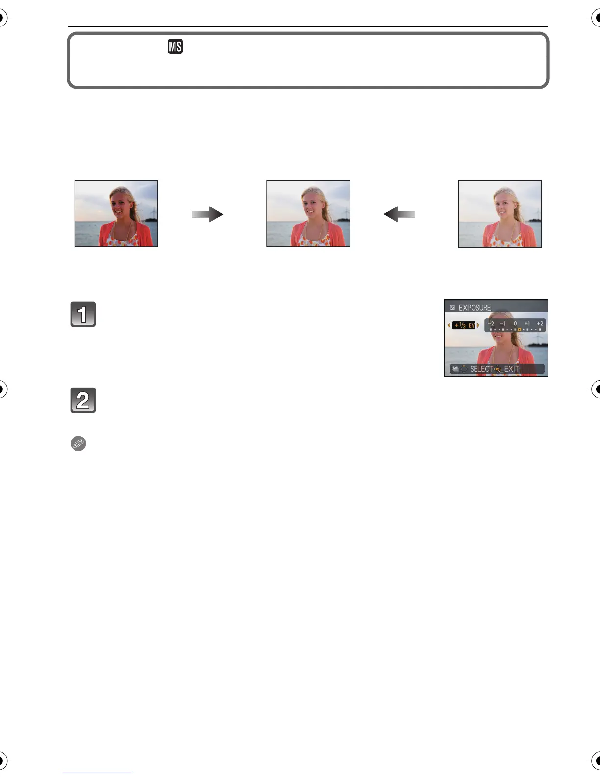 • The set exposure value is memorised even if the camera is turned off.
