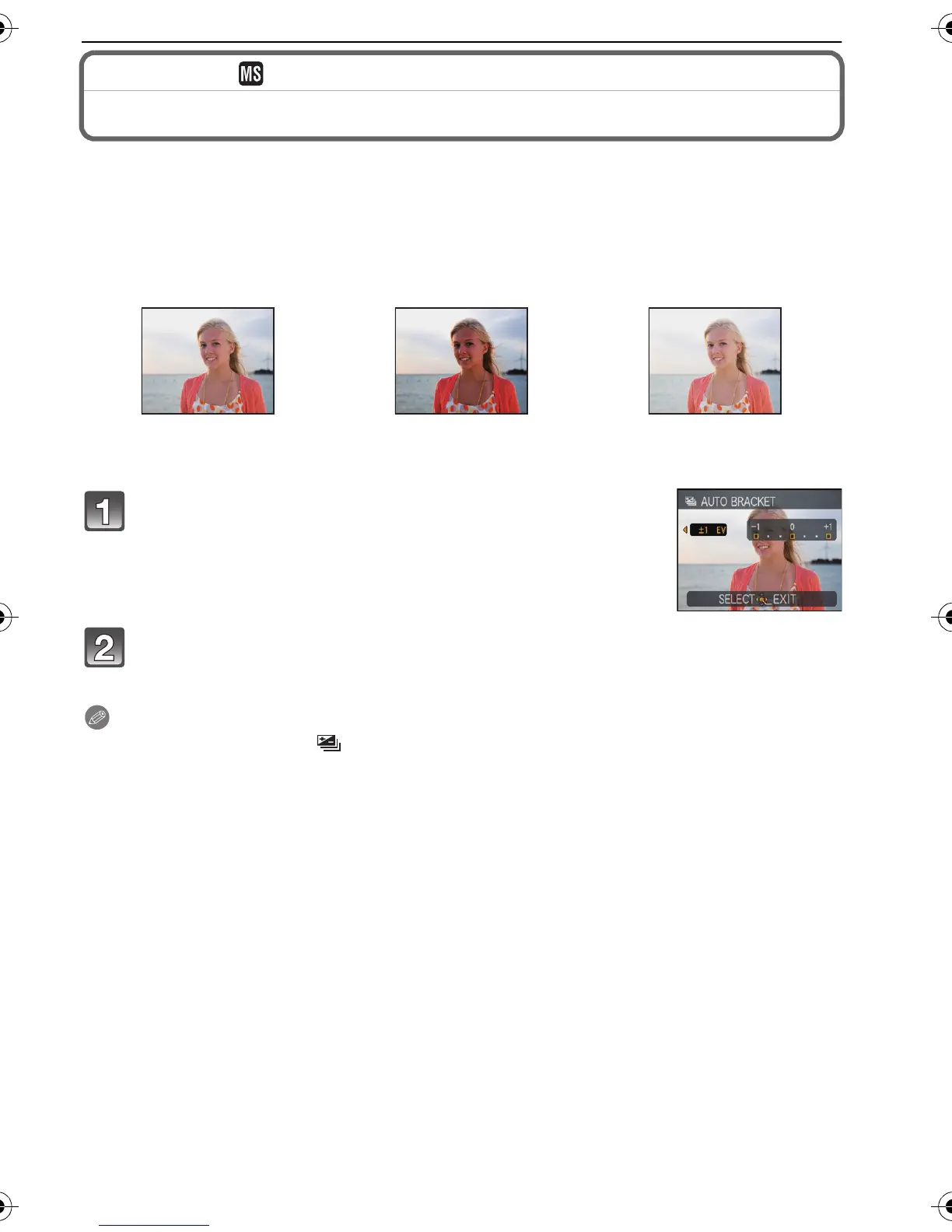 • When taking pictures using auto bracket after setting the exposure compensation range, the