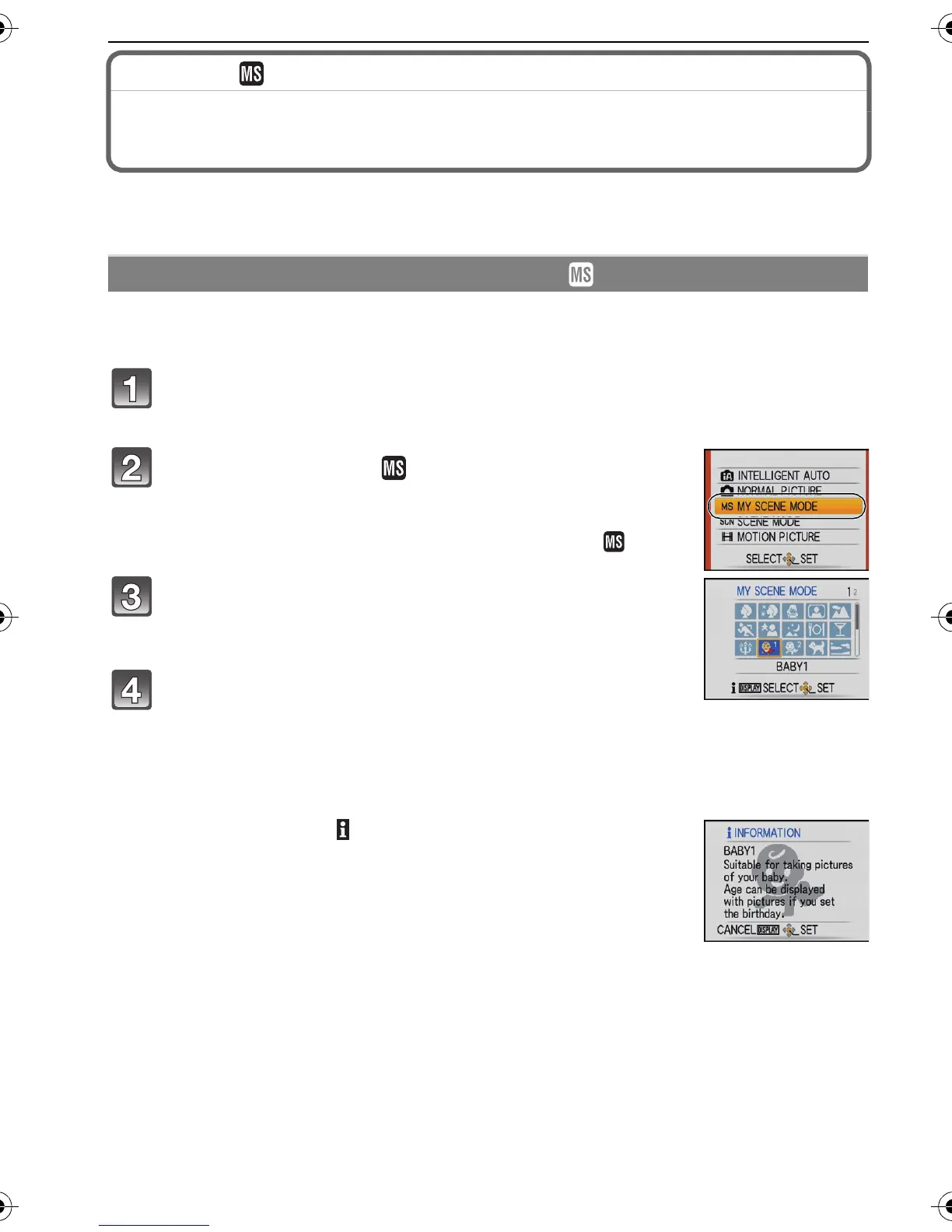 In [MY SCENE MODE], you can register the scene mode you use most frequently as one
